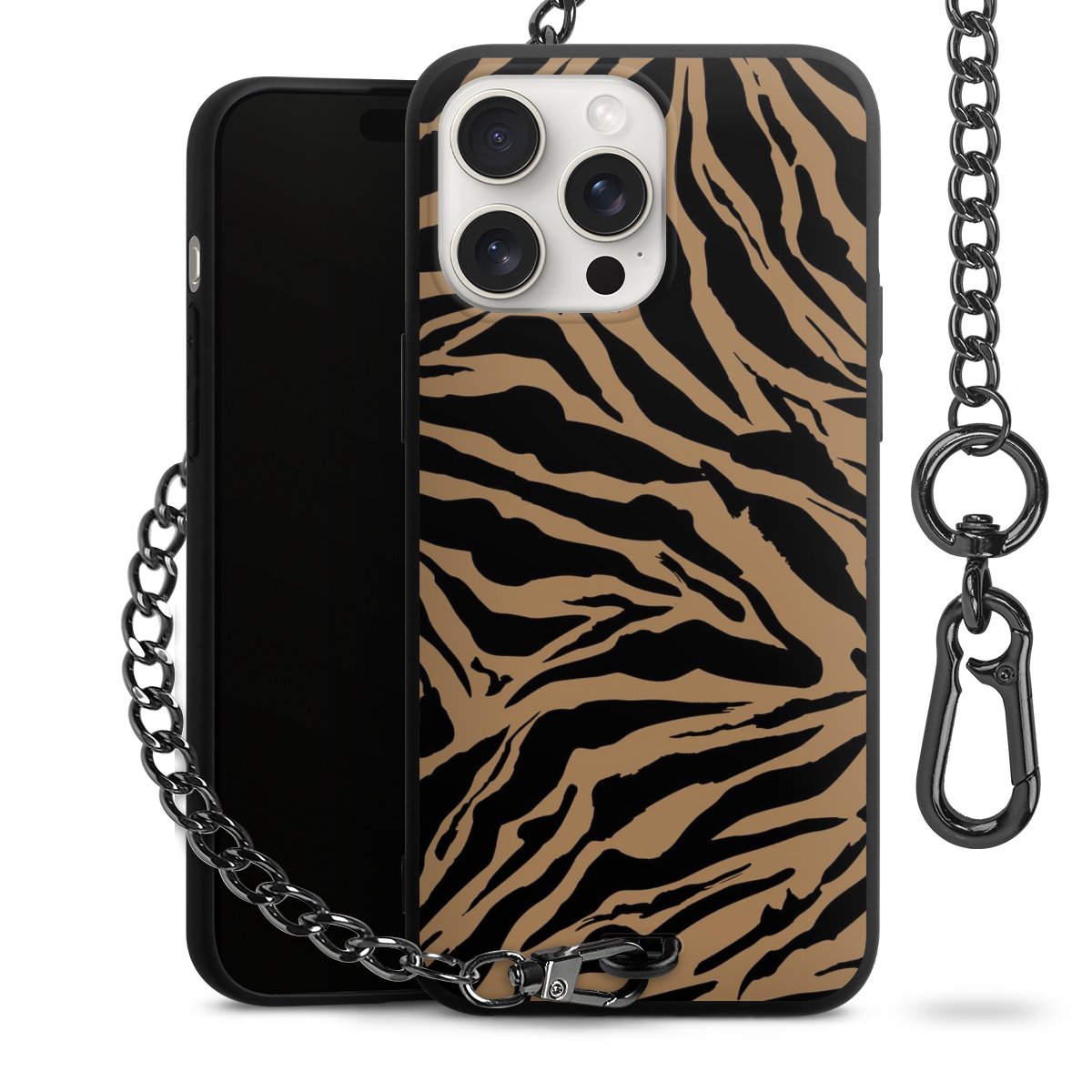 - Mattschwarze Handyhülle mit Metallkette