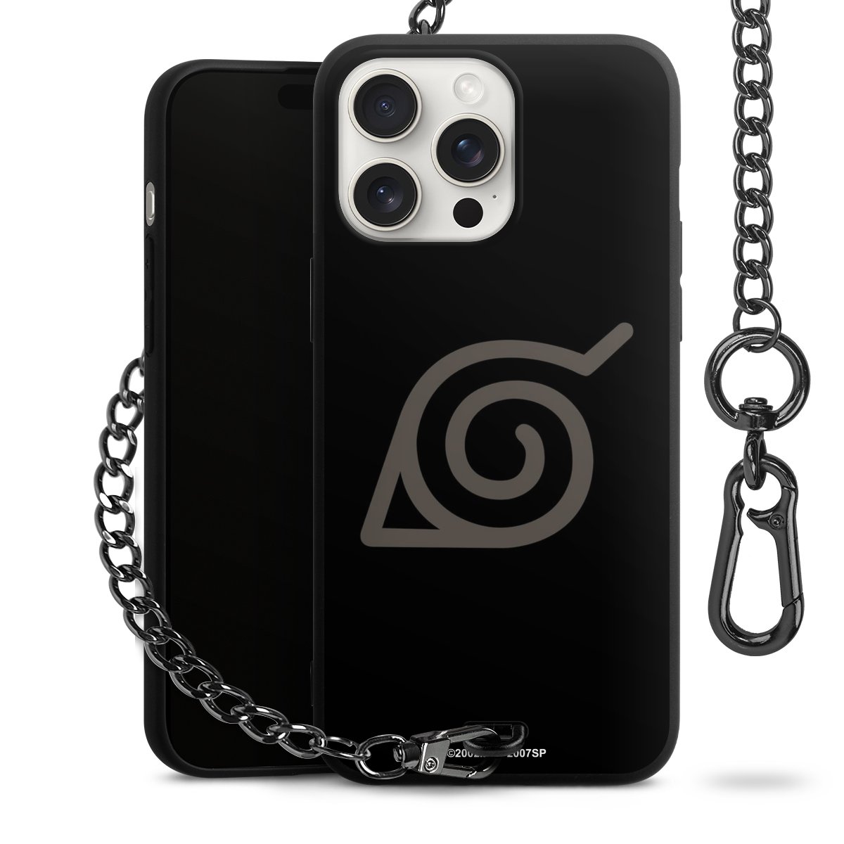 • Mattschwarze Handyhülle mit Metallkette