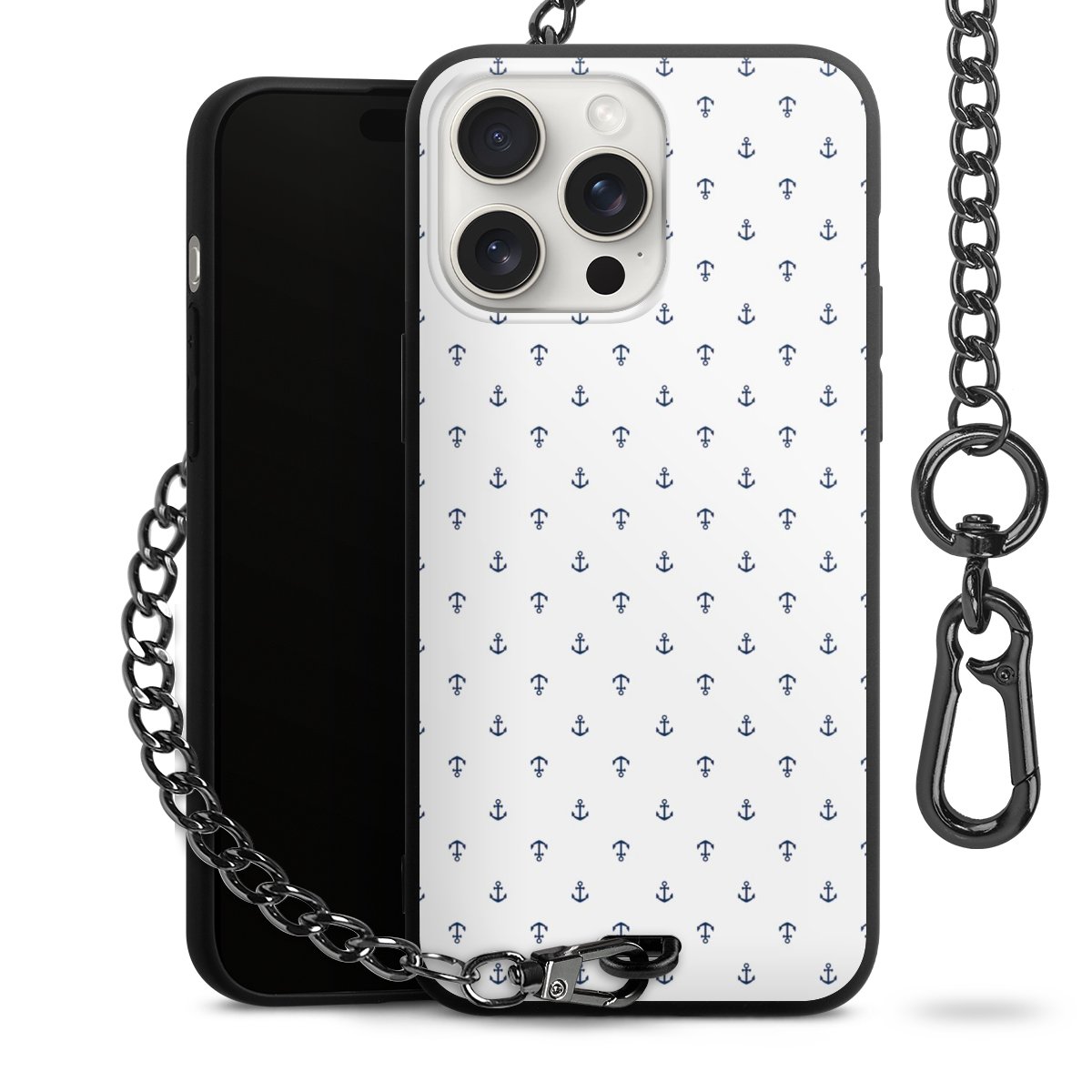 - Mattschwarze Handyhülle mit Metallkette