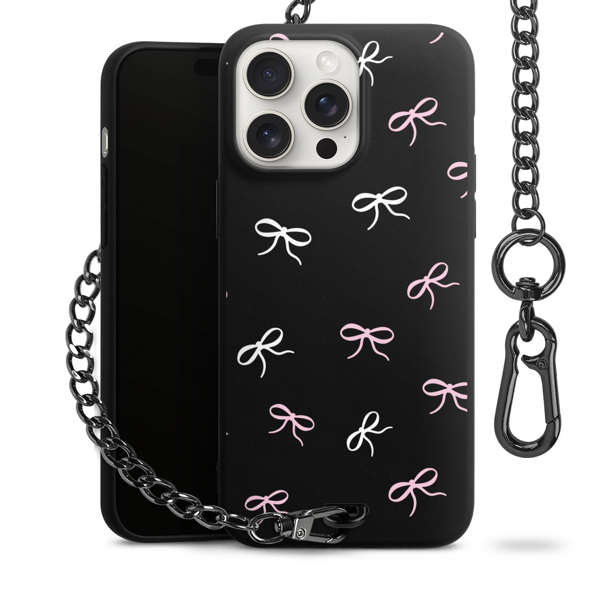 - Mattschwarze Handyhülle mit Metallkette