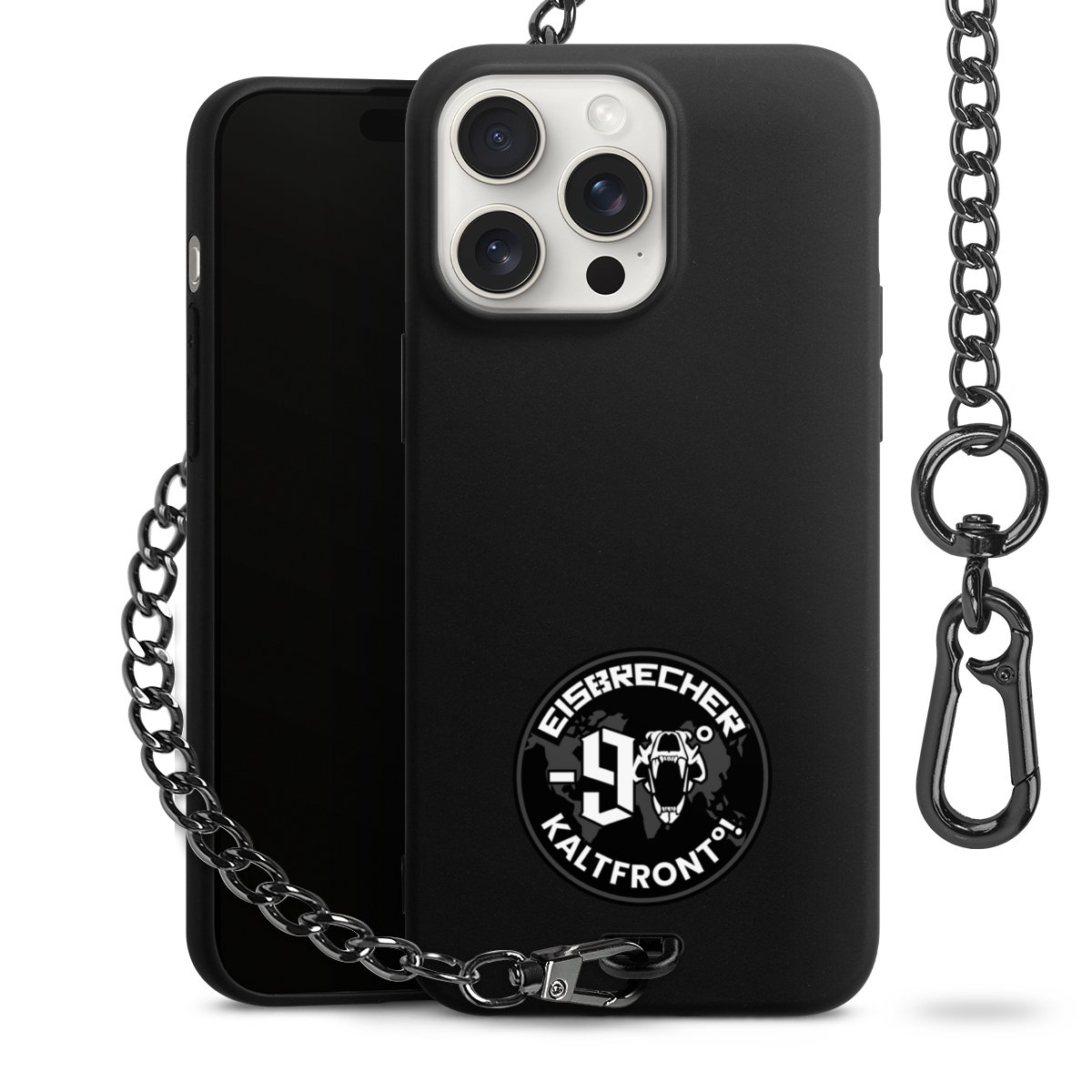 • Mattschwarze Handyhülle mit Metallkette