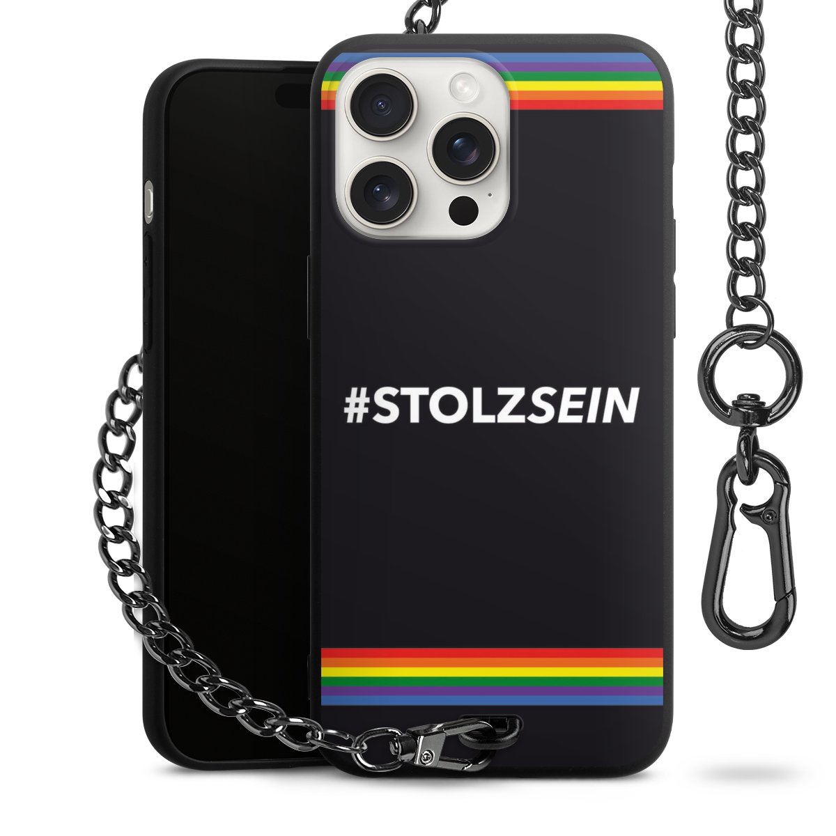 Die mattschwarze Silikon-Handyhülle besteht aus robustem TPU (thermoplastisches Polyurethan). Sie ist flexibel und schützt Dein Smartphone vor Stößen und Kratzern. Die Kette sowie der Karabinerhaken sind aus Metall in Gunmetal-Optik gefertigt. Für dieses Produkt kommen ausschließlich TÜV-geprüfte Materialien zum Einsatz.
