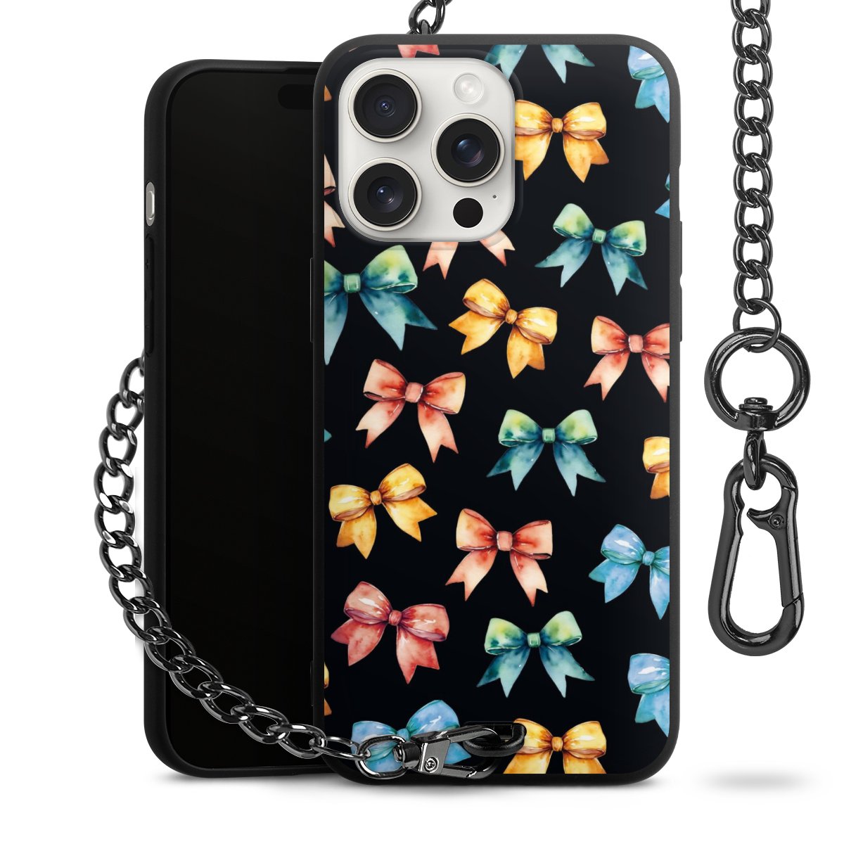 • Mattschwarze Handyhülle mit Metallkette