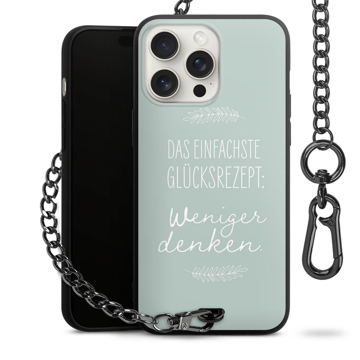 Die mattschwarze Silikon-Handyhülle besteht aus robustem TPU (thermoplastisches Polyurethan). Sie ist flexibel und schützt Dein Smartphone vor Stößen und Kratzern. Die Kette sowie der Karabinerhaken sind aus Metall in Gunmetal-Optik gefertigt. Für dieses Produkt kommen ausschließlich TÜV-geprüfte Materialien zum Einsatz.