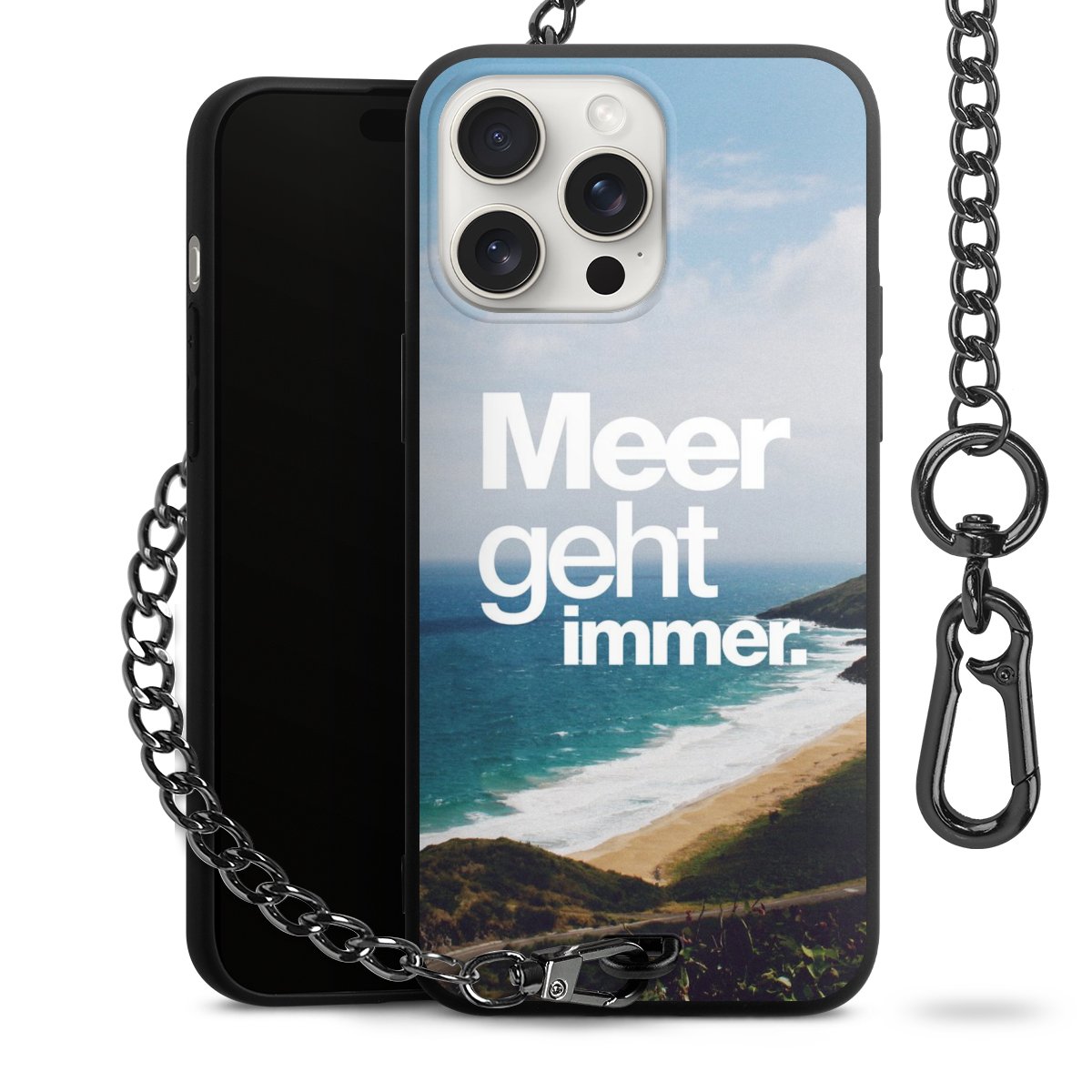 Die mattschwarze Silikon-Handyhülle besteht aus robustem TPU (thermoplastisches Polyurethan). Sie ist flexibel und schützt Dein Smartphone vor Stößen und Kratzern. Die Kette sowie der Karabinerhaken sind aus Metall in Gunmetal-Optik gefertigt. Für dieses Produkt kommen ausschließlich TÜV-geprüfte Materialien zum Einsatz.