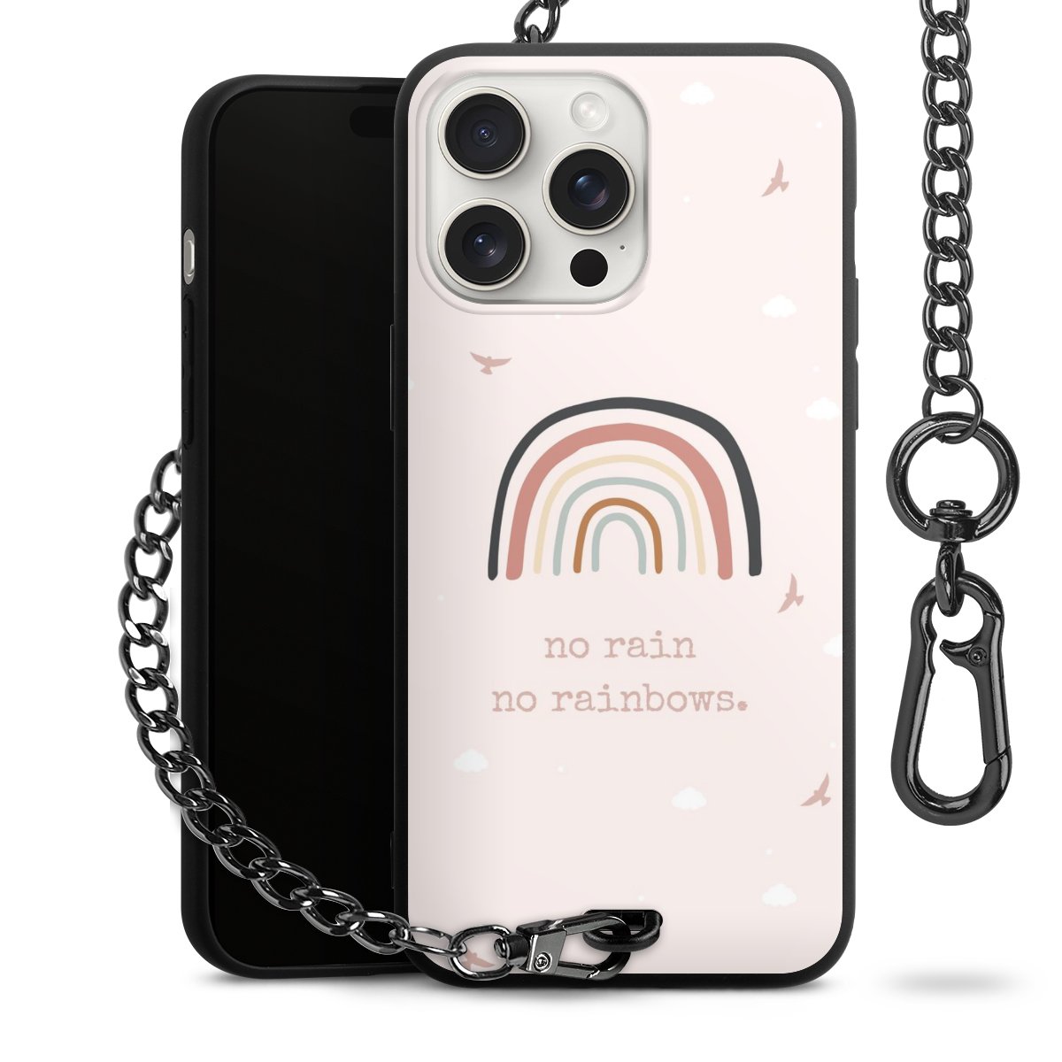 - Mattschwarze Handyhülle mit Metallkette