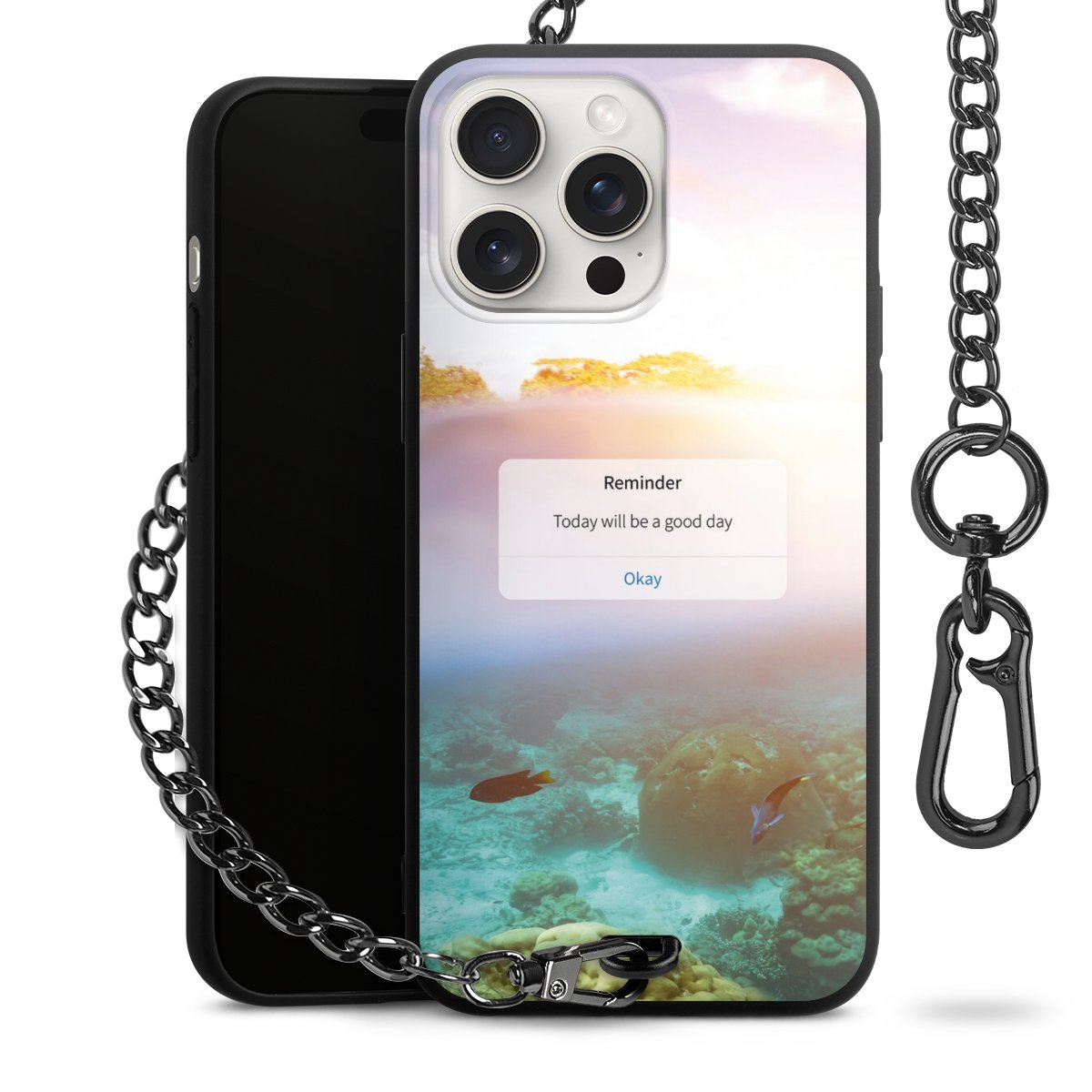 Die mattschwarze Silikon-Handyhülle besteht aus robustem TPU (thermoplastisches Polyurethan). Sie ist flexibel und schützt Dein Smartphone vor Stößen und Kratzern. Die Kette sowie der Karabinerhaken sind aus Metall in Gunmetal-Optik gefertigt. Für dieses Produkt kommen ausschließlich TÜV-geprüfte Materialien zum Einsatz.