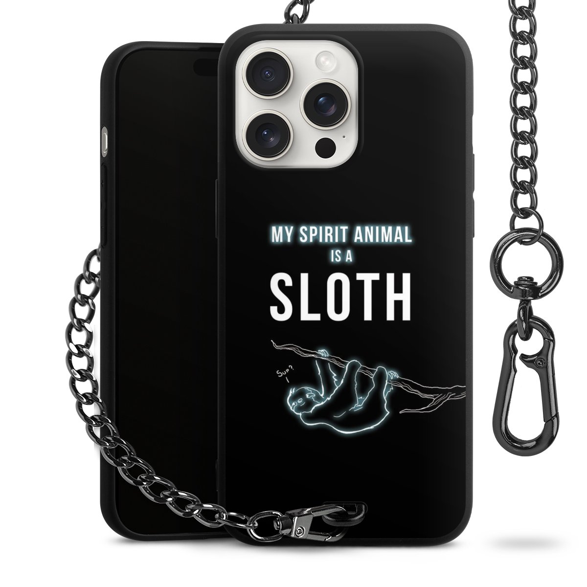 Die mattschwarze Silikon-Handyhülle besteht aus robustem TPU (thermoplastisches Polyurethan). Sie ist flexibel und schützt Dein Smartphone vor Stößen und Kratzern. Die Kette sowie der Karabinerhaken sind aus Metall in Gunmetal-Optik gefertigt. Für dieses Produkt kommen ausschließlich TÜV-geprüfte Materialien zum Einsatz.