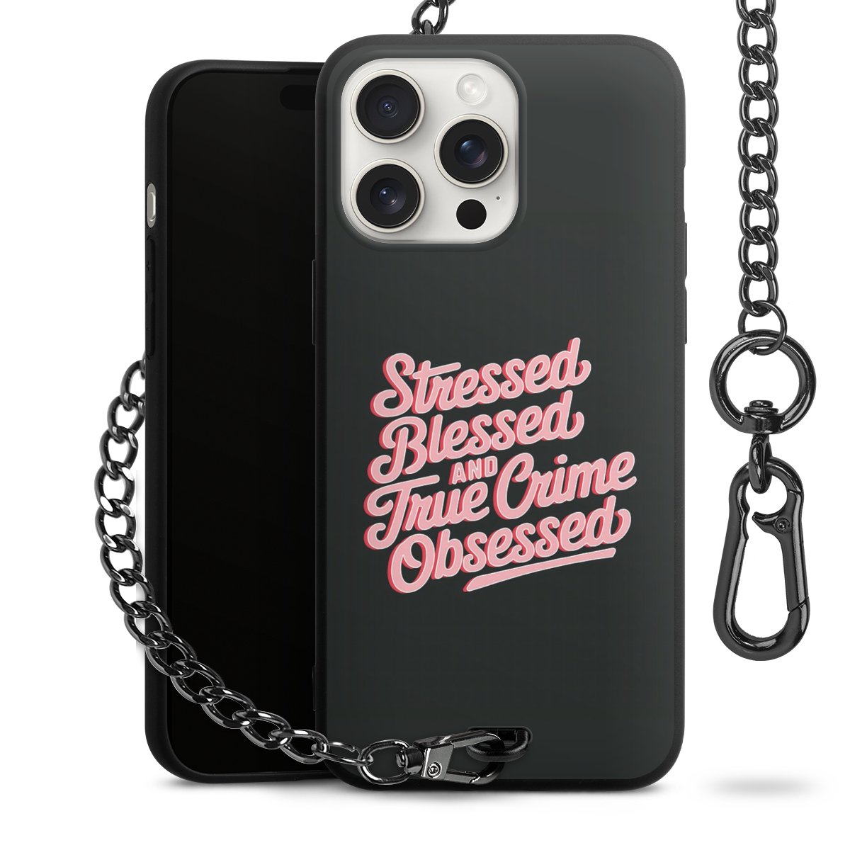 • Mattschwarze Handyhülle mit Metallkette