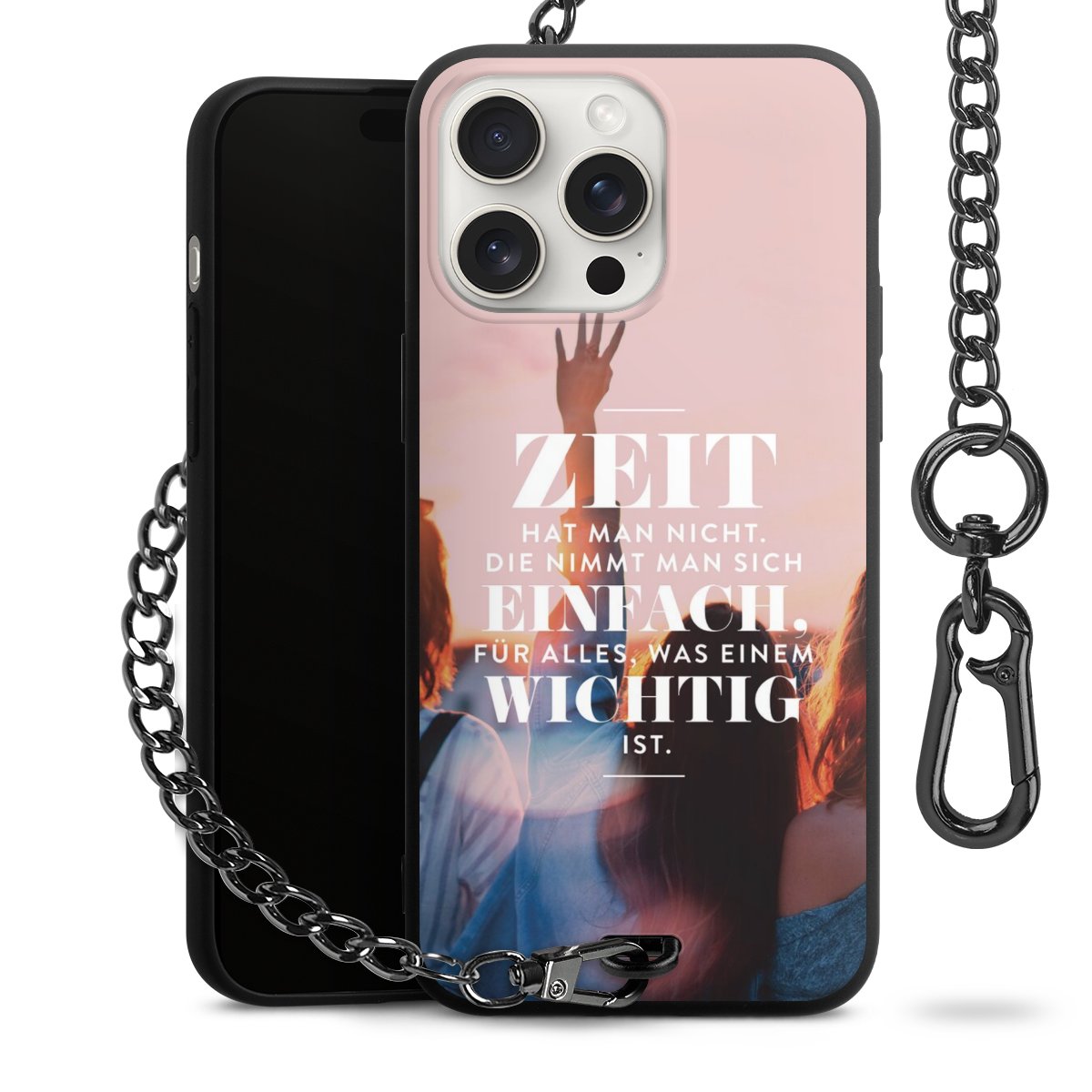 Die mattschwarze Silikon-Handyhülle besteht aus robustem TPU (thermoplastisches Polyurethan). Sie ist flexibel und schützt Dein Smartphone vor Stößen und Kratzern. Die Kette sowie der Karabinerhaken sind aus Metall in Gunmetal-Optik gefertigt. Für dieses Produkt kommen ausschließlich TÜV-geprüfte Materialien zum Einsatz.