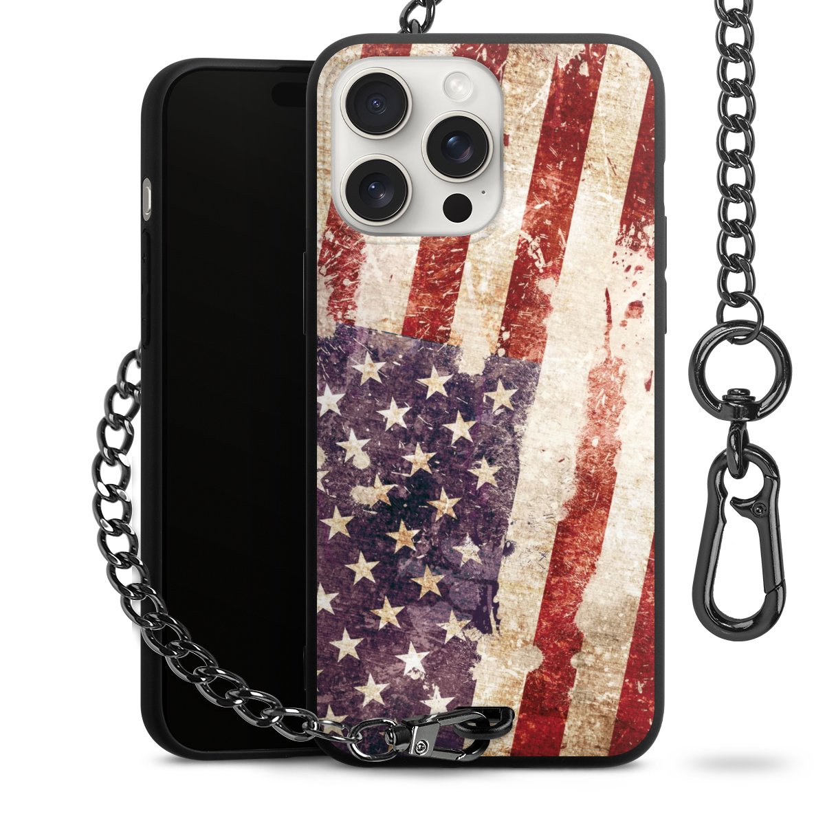 - Mattschwarze Handyhülle mit Metallkette