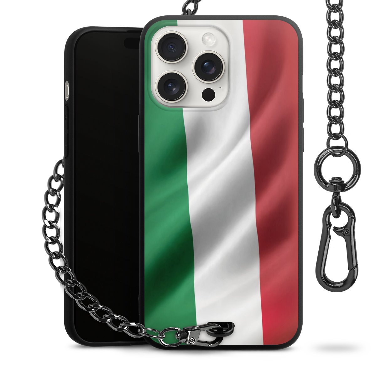 Die mattschwarze Silikon-Handyhülle besteht aus robustem TPU (thermoplastisches Polyurethan). Sie ist flexibel und schützt Dein Smartphone vor Stößen und Kratzern. Die Kette sowie der Karabinerhaken sind aus Metall in Gunmetal-Optik gefertigt. Für dieses Produkt kommen ausschließlich TÜV-geprüfte Materialien zum Einsatz.