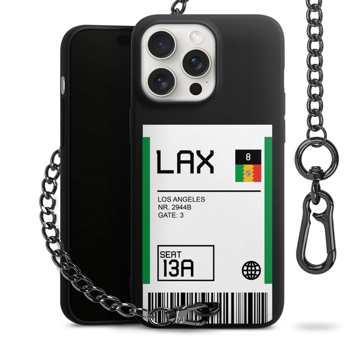 • Mattschwarze Handyhülle mit Metallkette
