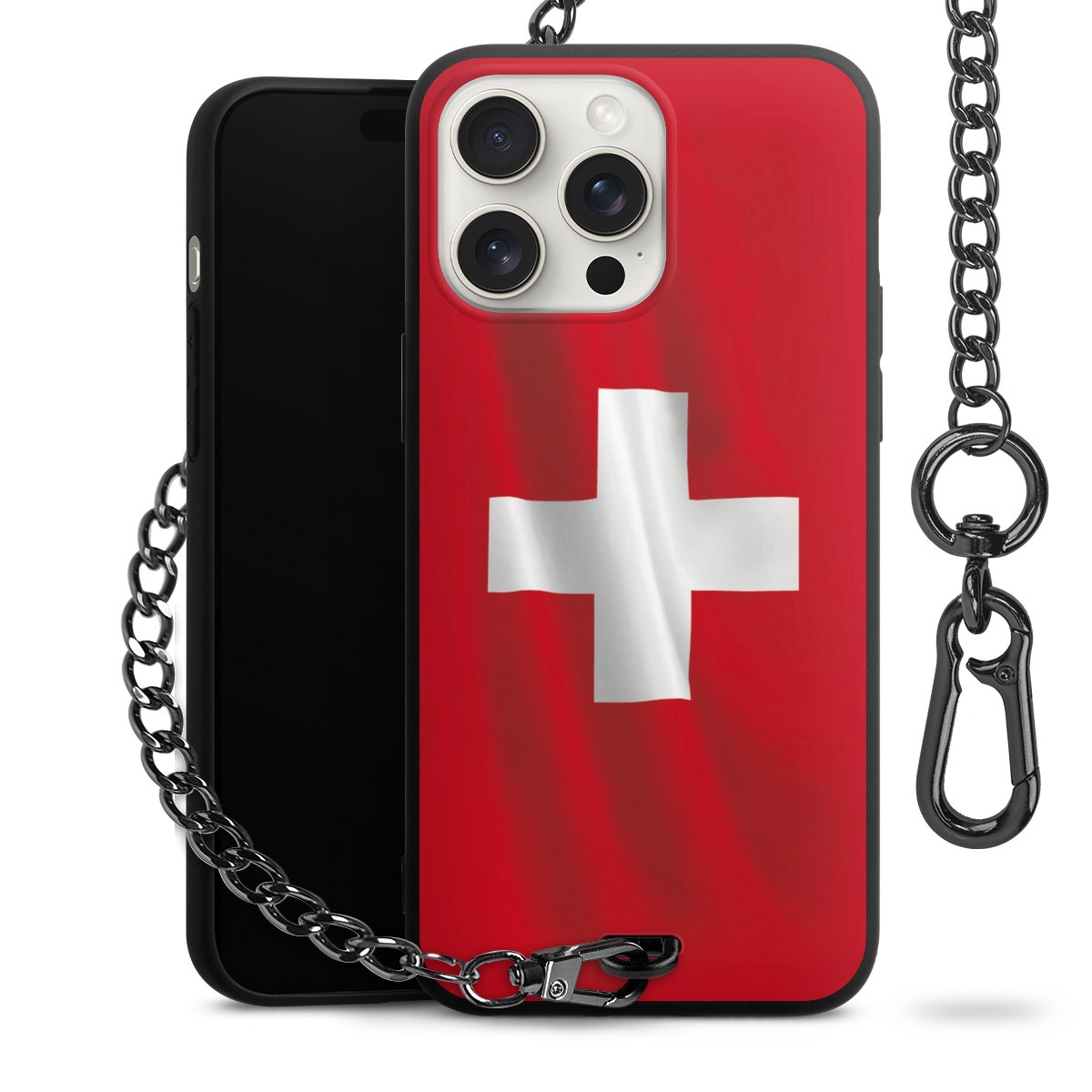 Die mattschwarze Silikon-Handyhülle besteht aus robustem TPU (thermoplastisches Polyurethan). Sie ist flexibel und schützt Dein Smartphone vor Stößen und Kratzern. Die Kette sowie der Karabinerhaken sind aus Metall in Gunmetal-Optik gefertigt. Für dieses Produkt kommen ausschließlich TÜV-geprüfte Materialien zum Einsatz.