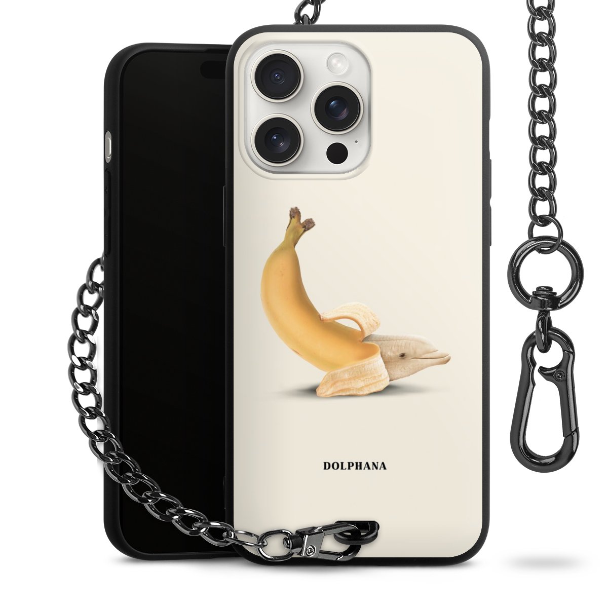 • Mattschwarze Handyhülle mit Metallkette