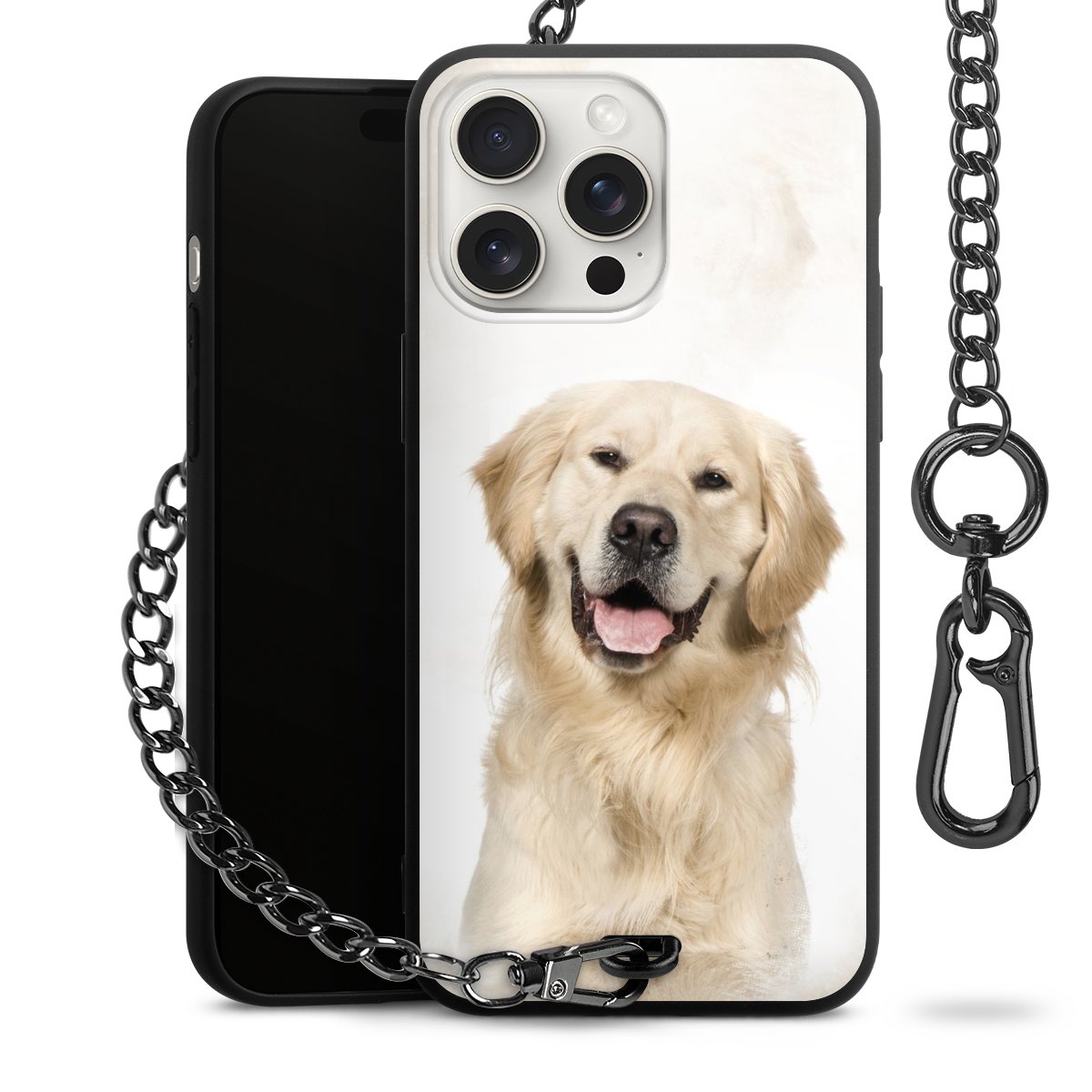 • Mattschwarze Handyhülle mit Metallkette