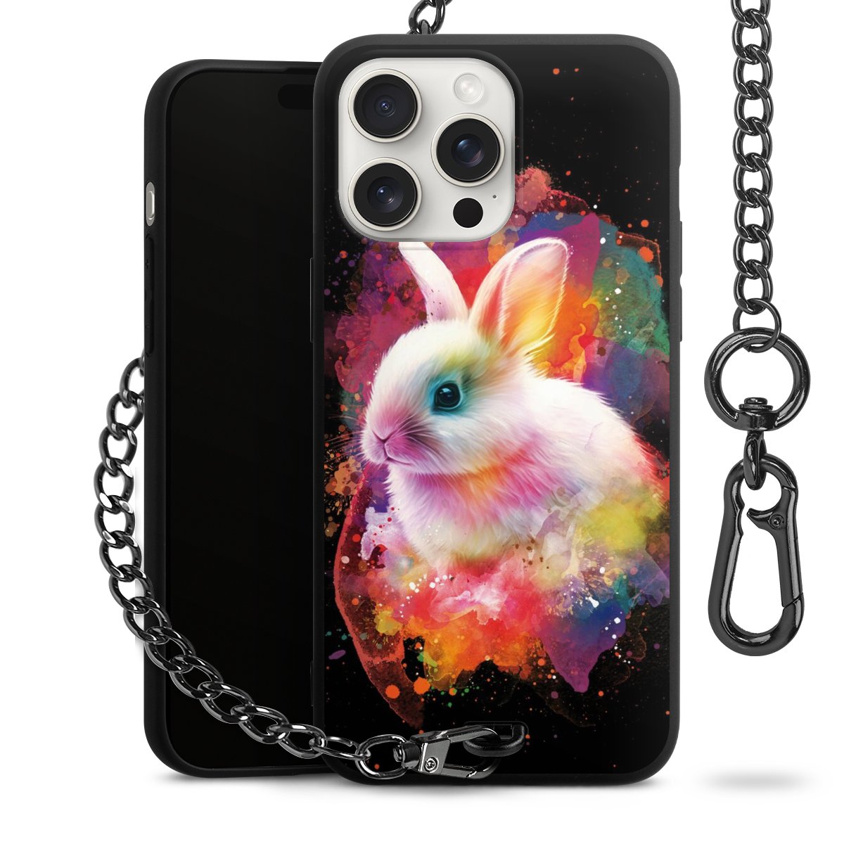 • Mattschwarze Handyhülle mit Metallkette