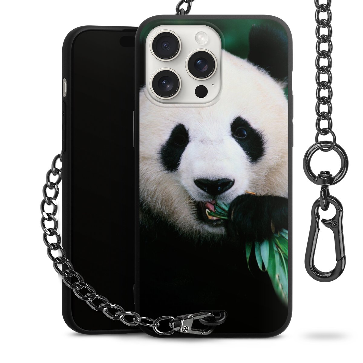 - Mattschwarze Handyhülle mit Metallkette