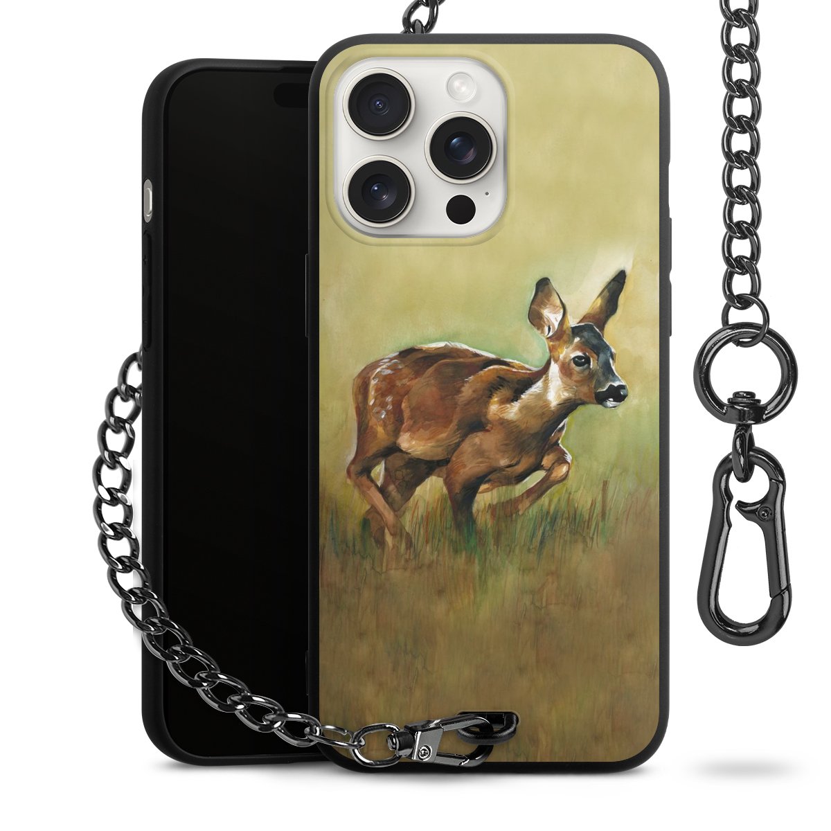 • Mattschwarze Handyhülle mit Metallkette