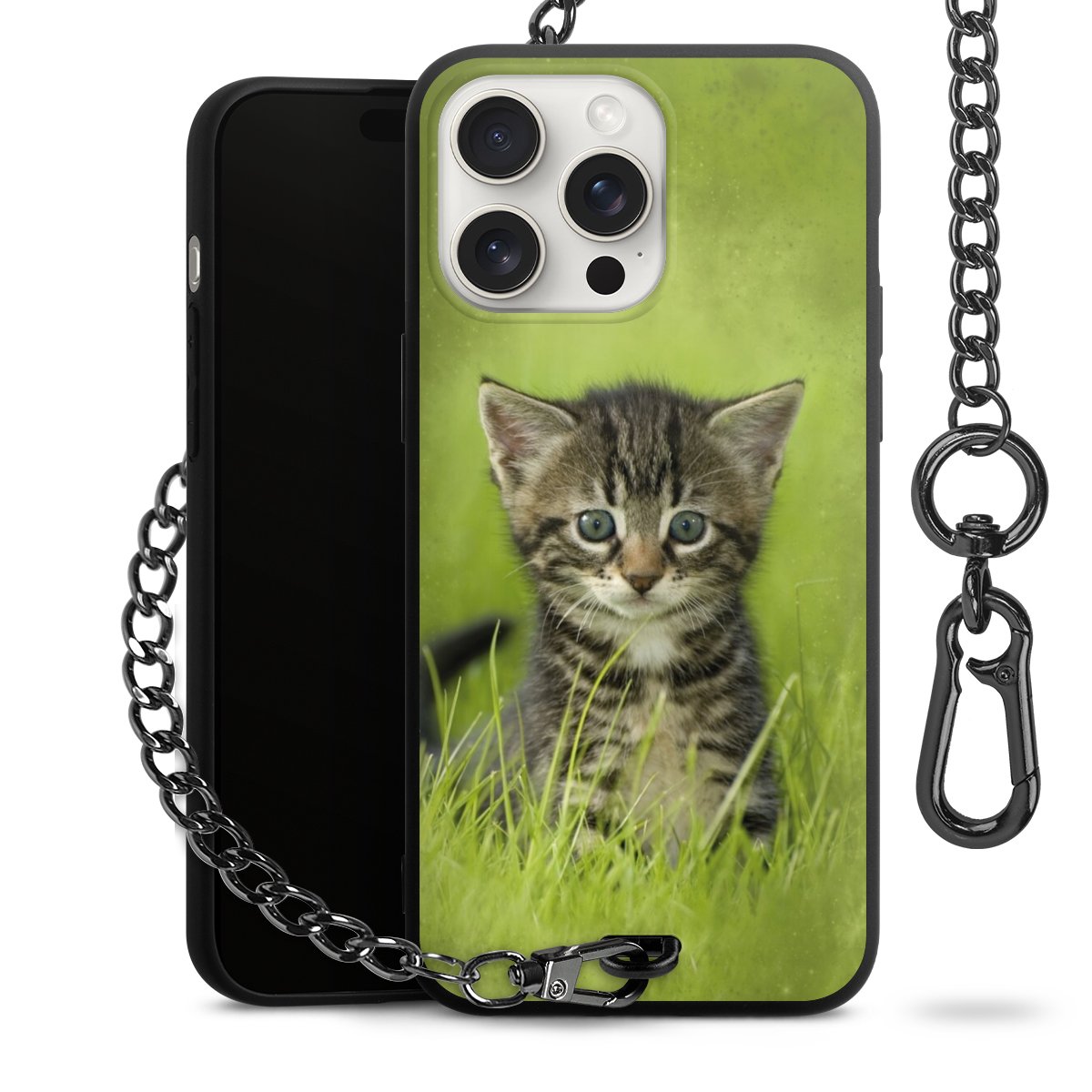 - Mattschwarze Handyhülle mit Metallkette