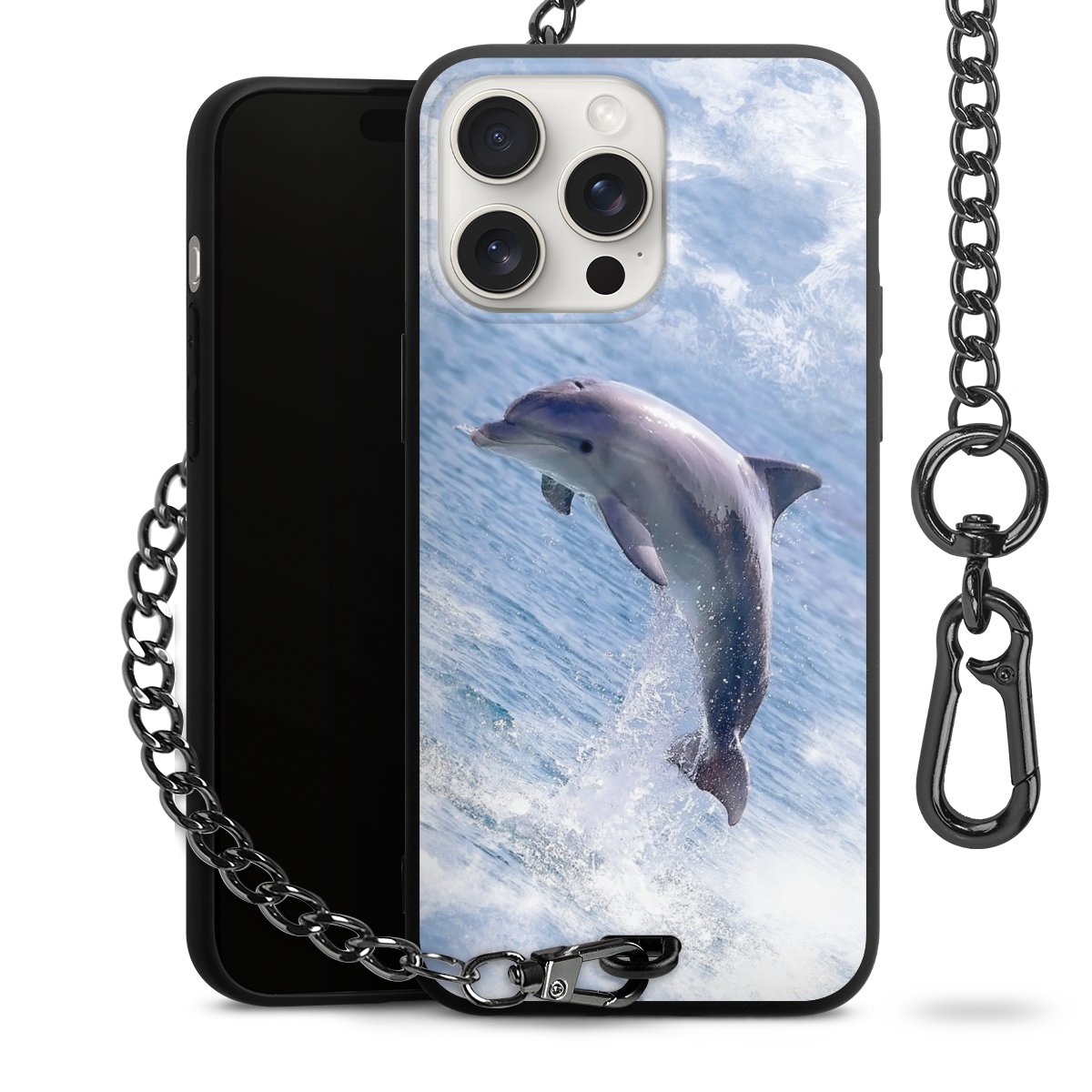 • Mattschwarze Handyhülle mit Metallkette