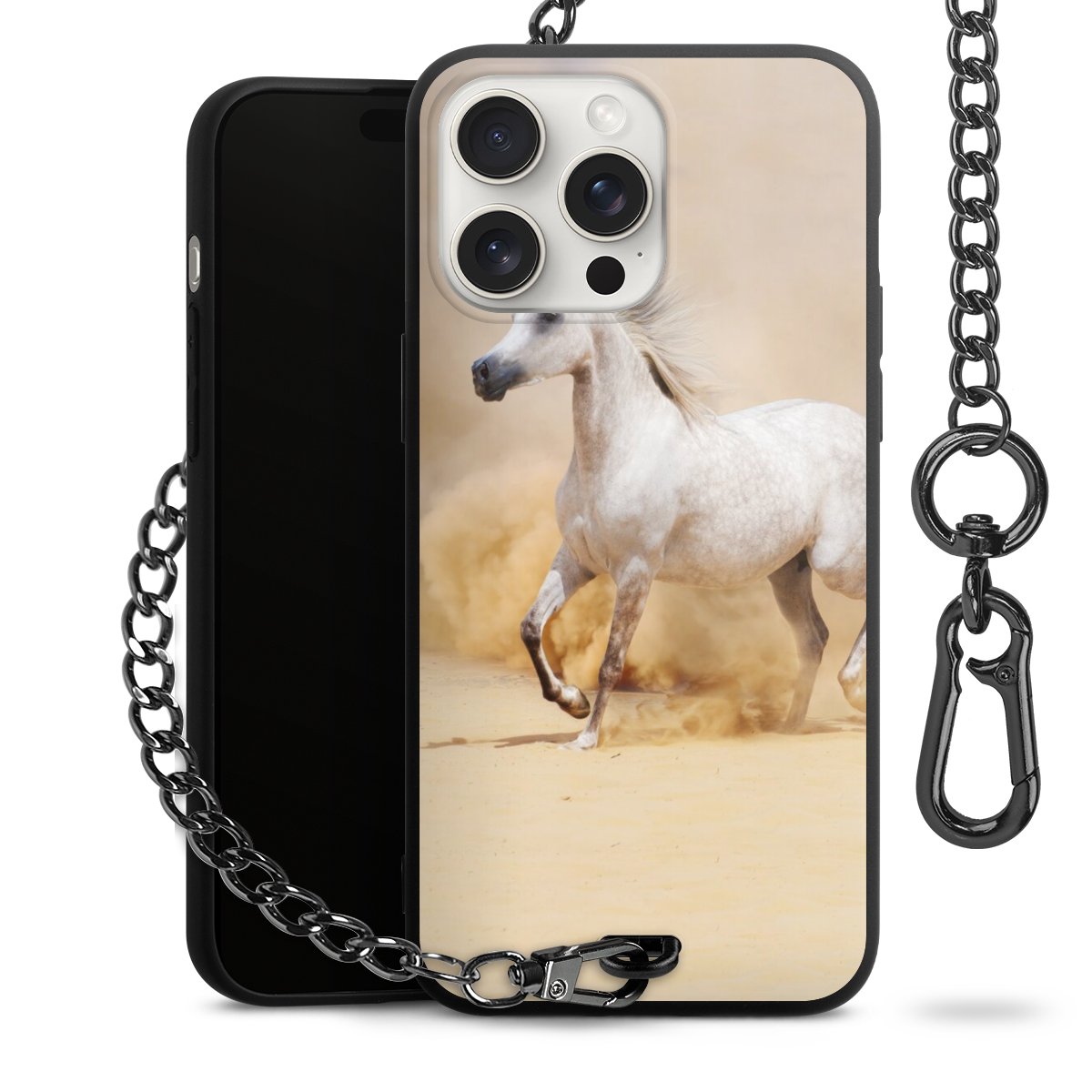 • Mattschwarze Handyhülle mit Metallkette