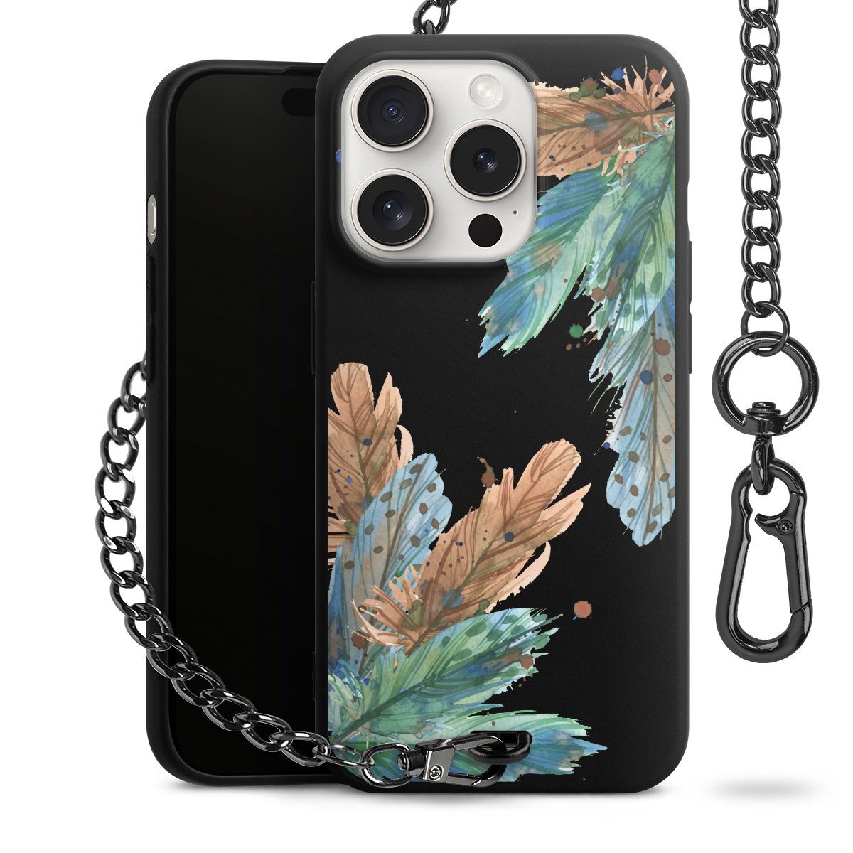 • Mattschwarze Handyhülle mit Metallkette