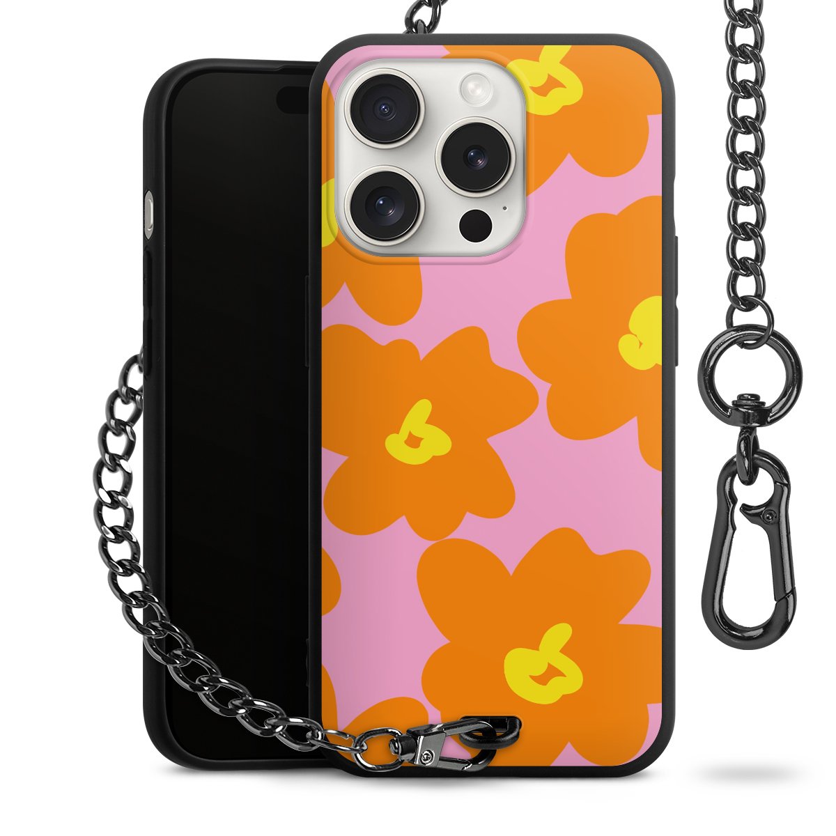 Die mattschwarze Silikon-Handyhülle besteht aus robustem TPU (thermoplastisches Polyurethan). Sie ist flexibel und schützt Dein Smartphone vor Stößen und Kratzern. Die Kette sowie der Karabinerhaken sind aus Metall in Gunmetal-Optik gefertigt. Für dieses Produkt kommen ausschließlich TÜV-geprüfte Materialien zum Einsatz.