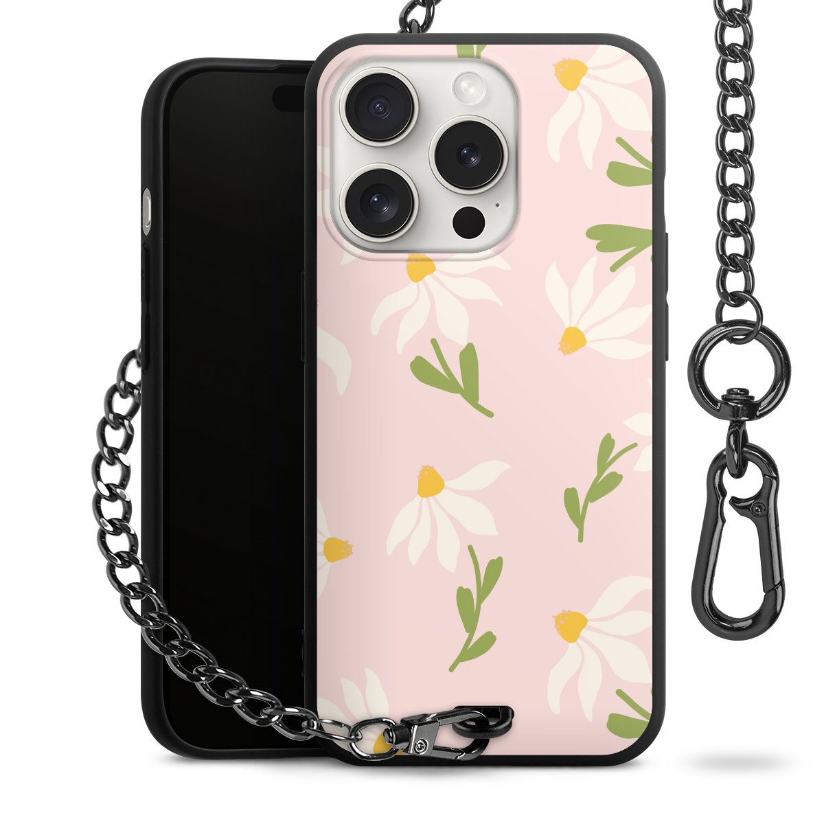 • Mattschwarze Handyhülle mit Metallkette