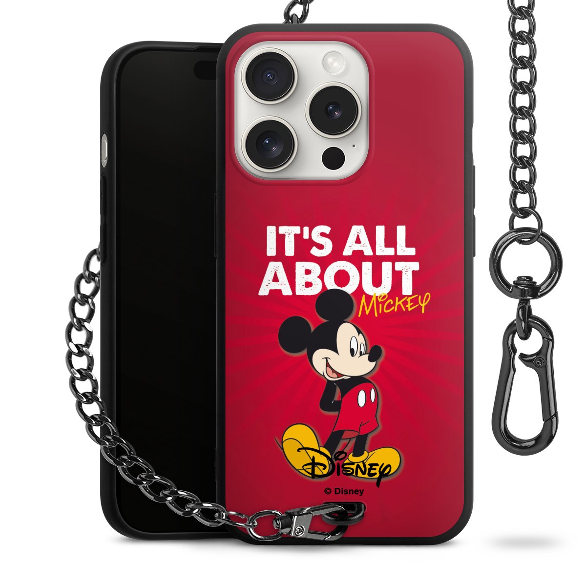 Die Handyhülle verfügt über eine mittig am unteren Rand platzierte Öse, an der die Metallkette stabil befestigt ist. Bestelle die Hülle einfach für Dein Smartphone-Modell, dann passt sie wie angegossen und Du brauchst sie bloß einmal anzudrücken. Handy in die Tasche, Karabiner an den Hosenbund – schon kann die Party starten.