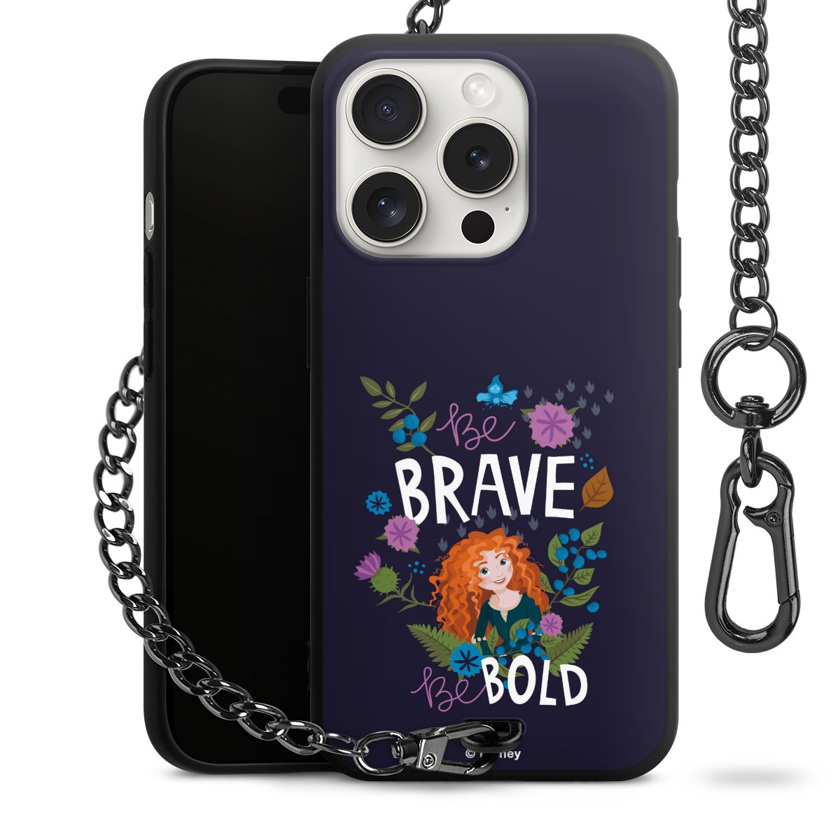 • Mattschwarze Handyhülle mit Metallkette
