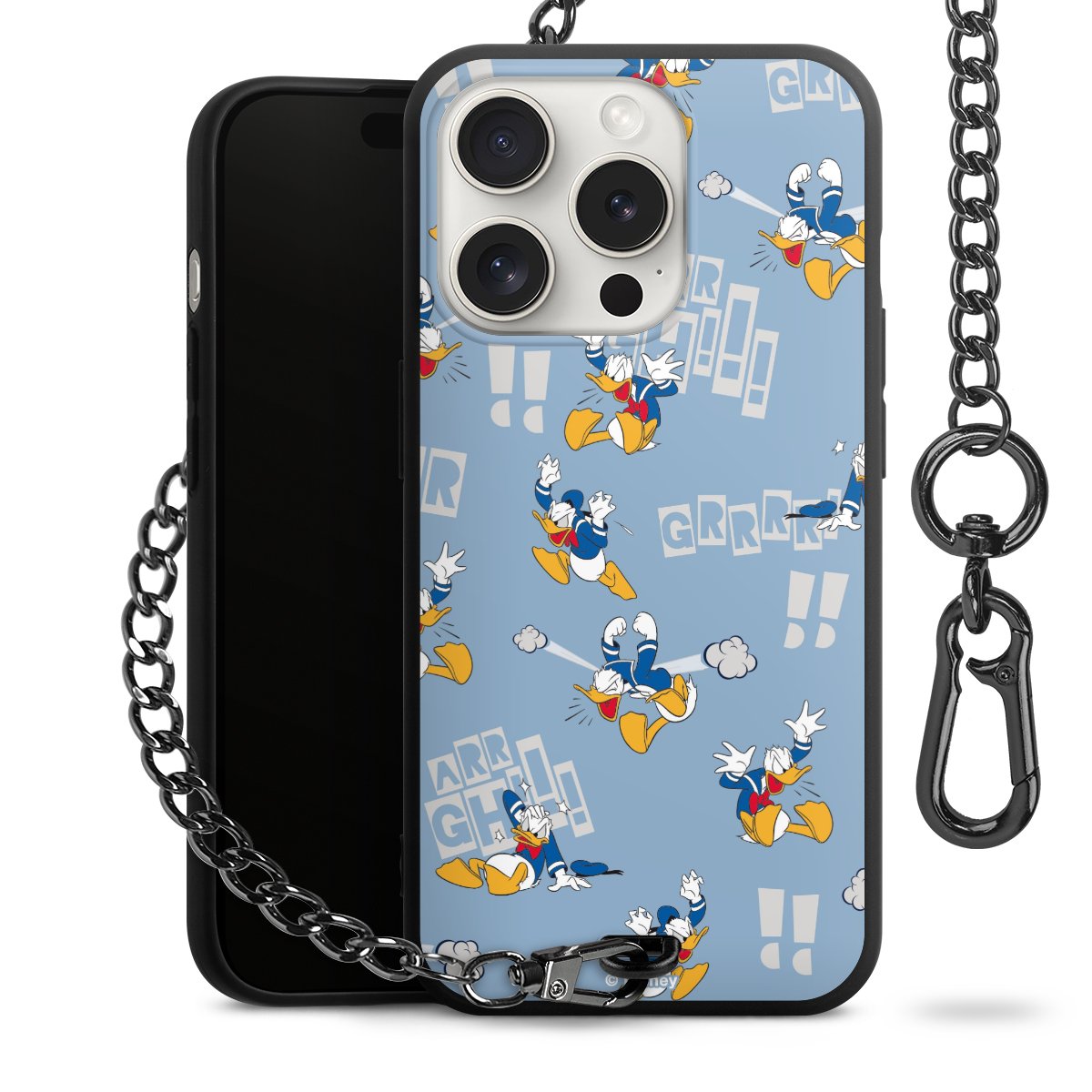 Die mattschwarze Silikon-Handyhülle besteht aus robustem TPU (thermoplastisches Polyurethan). Sie ist flexibel und schützt Dein Smartphone vor Stößen und Kratzern. Die Kette sowie der Karabinerhaken sind aus Metall in Gunmetal-Optik gefertigt. Für dieses Produkt kommen ausschließlich TÜV-geprüfte Materialien zum Einsatz.