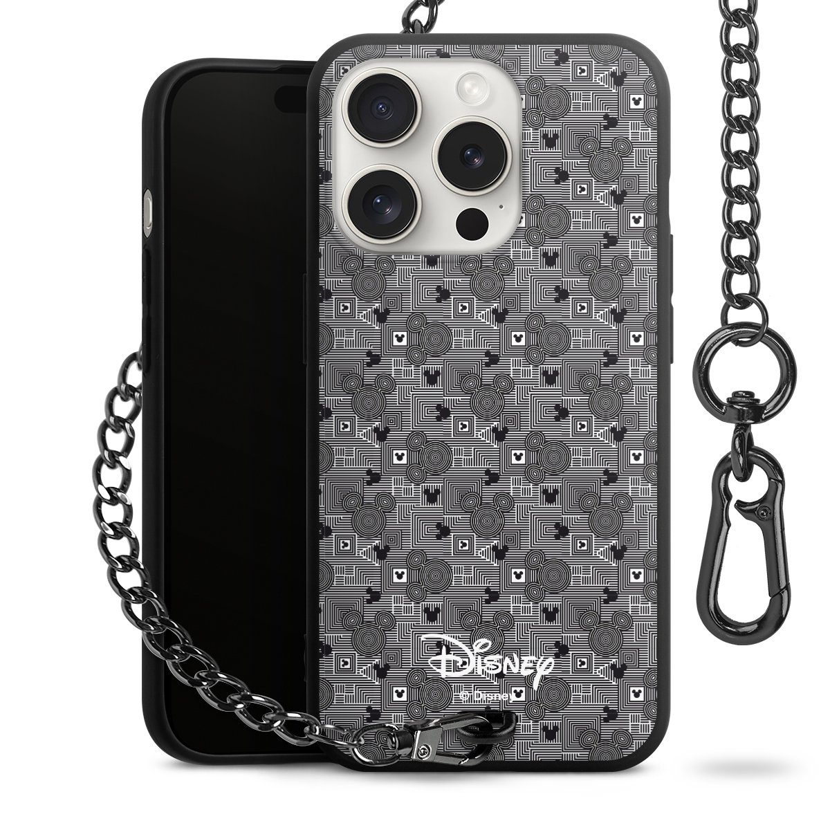 • Mattschwarze Handyhülle mit Metallkette