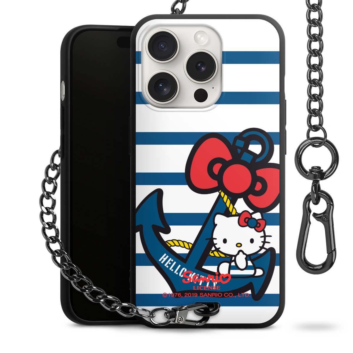Die mattschwarze Silikon-Handyhülle besteht aus robustem TPU (thermoplastisches Polyurethan). Sie ist flexibel und schützt Dein Smartphone vor Stößen und Kratzern. Die Kette sowie der Karabinerhaken sind aus Metall in Gunmetal-Optik gefertigt. Für dieses Produkt kommen ausschließlich TÜV-geprüfte Materialien zum Einsatz.