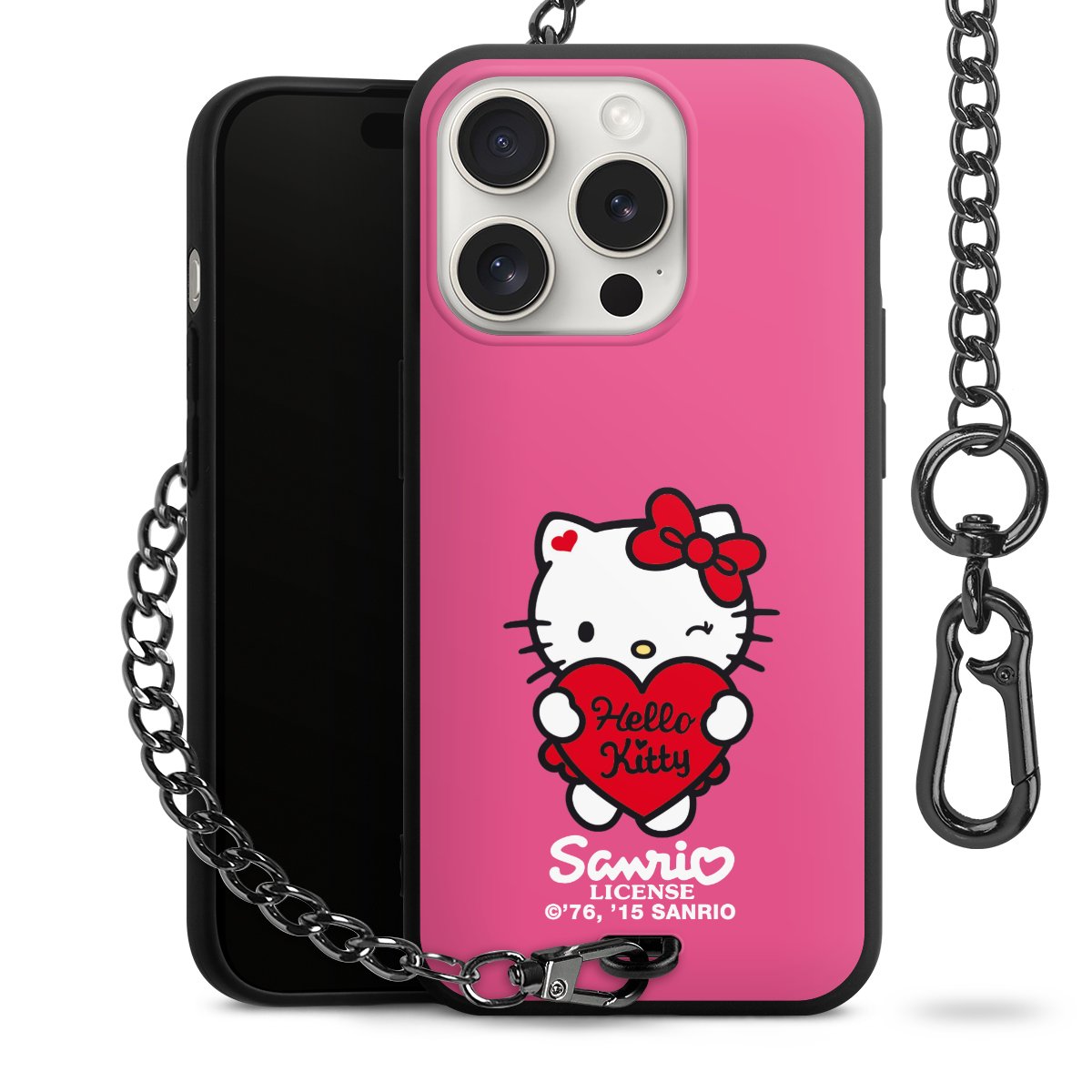 Die mattschwarze Silikon-Handyhülle besteht aus robustem TPU (thermoplastisches Polyurethan). Sie ist flexibel und schützt Dein Smartphone vor Stößen und Kratzern. Die Kette sowie der Karabinerhaken sind aus Metall in Gunmetal-Optik gefertigt. Für dieses Produkt kommen ausschließlich TÜV-geprüfte Materialien zum Einsatz.