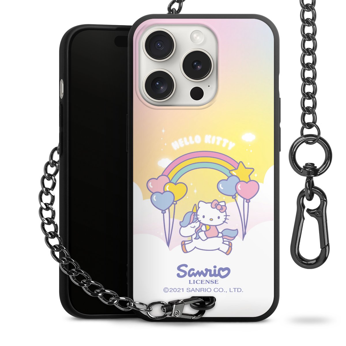 Die mattschwarze Silikon-Handyhülle besteht aus robustem TPU (thermoplastisches Polyurethan). Sie ist flexibel und schützt Dein Smartphone vor Stößen und Kratzern. Die Kette sowie der Karabinerhaken sind aus Metall in Gunmetal-Optik gefertigt. Für dieses Produkt kommen ausschließlich TÜV-geprüfte Materialien zum Einsatz.