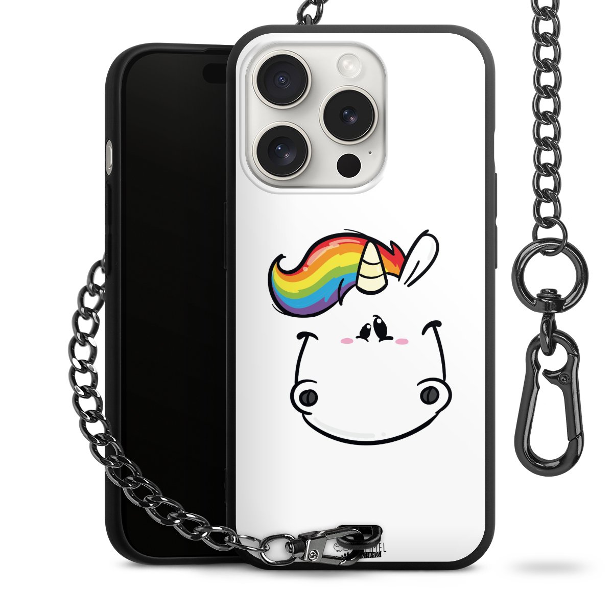Die mattschwarze Silikon-Handyhülle besteht aus robustem TPU (thermoplastisches Polyurethan). Sie ist flexibel und schützt Dein Smartphone vor Stößen und Kratzern. Die Kette sowie der Karabinerhaken sind aus Metall in Gunmetal-Optik gefertigt. Für dieses Produkt kommen ausschließlich TÜV-geprüfte Materialien zum Einsatz.