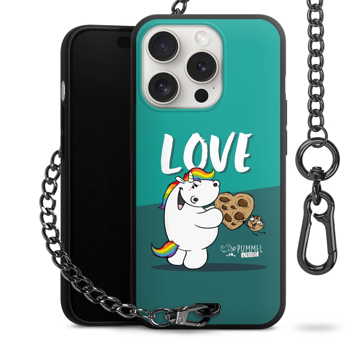 Die mattschwarze Silikon-Handyhülle besteht aus robustem TPU (thermoplastisches Polyurethan). Sie ist flexibel und schützt Dein Smartphone vor Stößen und Kratzern. Die Kette sowie der Karabinerhaken sind aus Metall in Gunmetal-Optik gefertigt. Für dieses Produkt kommen ausschließlich TÜV-geprüfte Materialien zum Einsatz.
