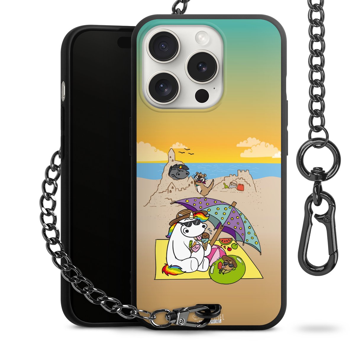 Die mattschwarze Silikon-Handyhülle besteht aus robustem TPU (thermoplastisches Polyurethan). Sie ist flexibel und schützt Dein Smartphone vor Stößen und Kratzern. Die Kette sowie der Karabinerhaken sind aus Metall in Gunmetal-Optik gefertigt. Für dieses Produkt kommen ausschließlich TÜV-geprüfte Materialien zum Einsatz.
