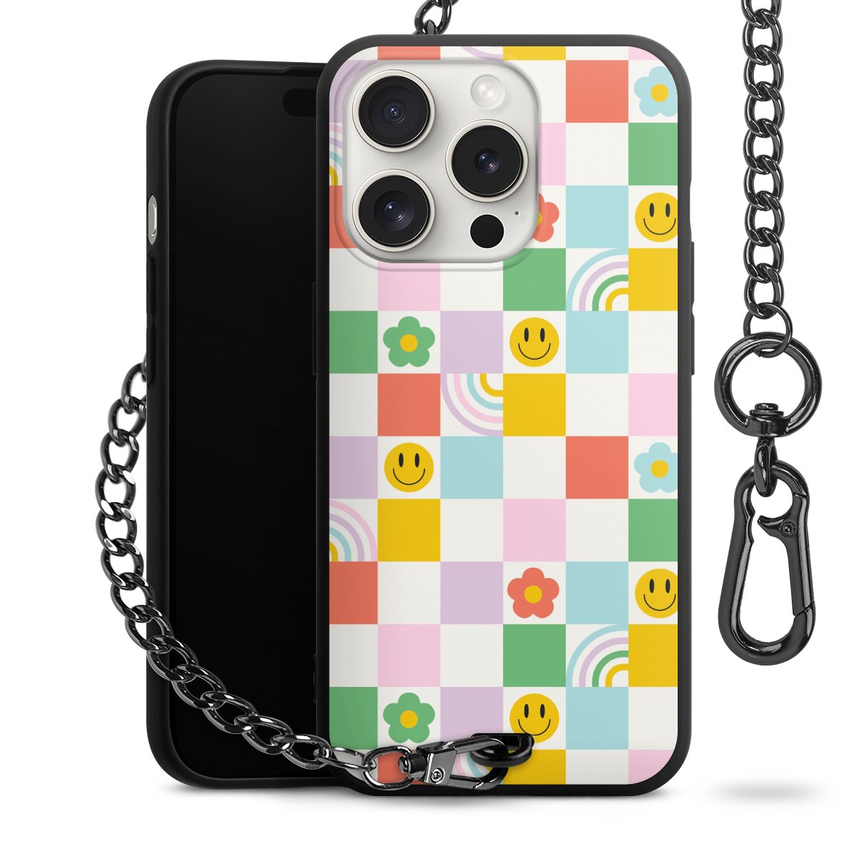 Die mattschwarze Silikon-Handyhülle besteht aus robustem TPU (thermoplastisches Polyurethan). Sie ist flexibel und schützt Dein Smartphone vor Stößen und Kratzern. Die Kette sowie der Karabinerhaken sind aus Metall in Gunmetal-Optik gefertigt. Für dieses Produkt kommen ausschließlich TÜV-geprüfte Materialien zum Einsatz.