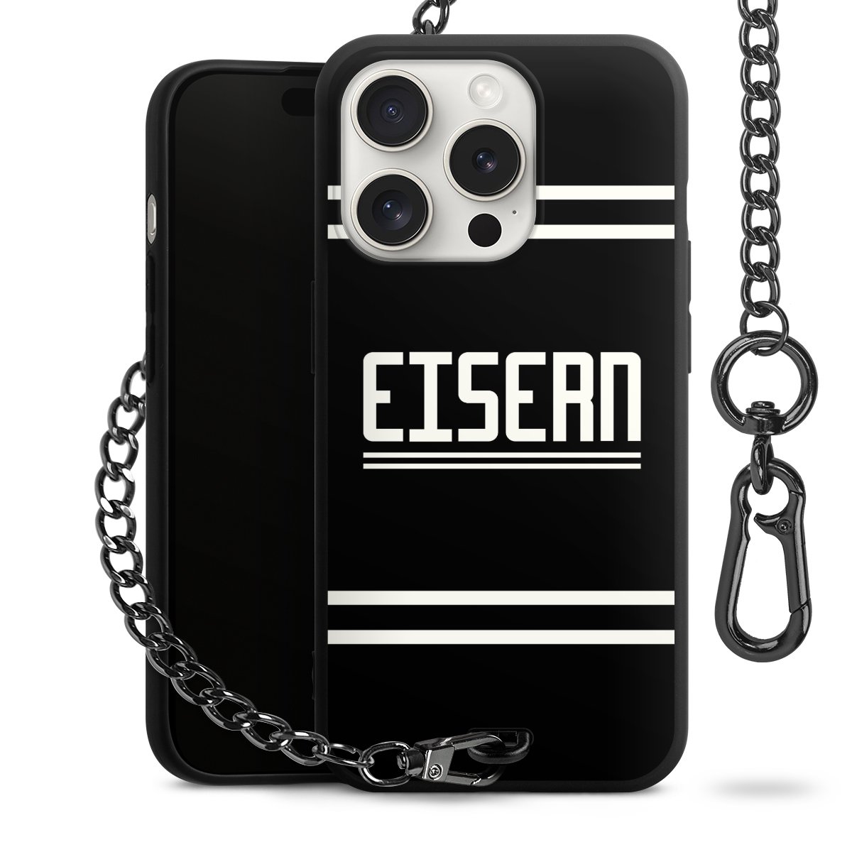 • Mattschwarze Handyhülle mit Metallkette
