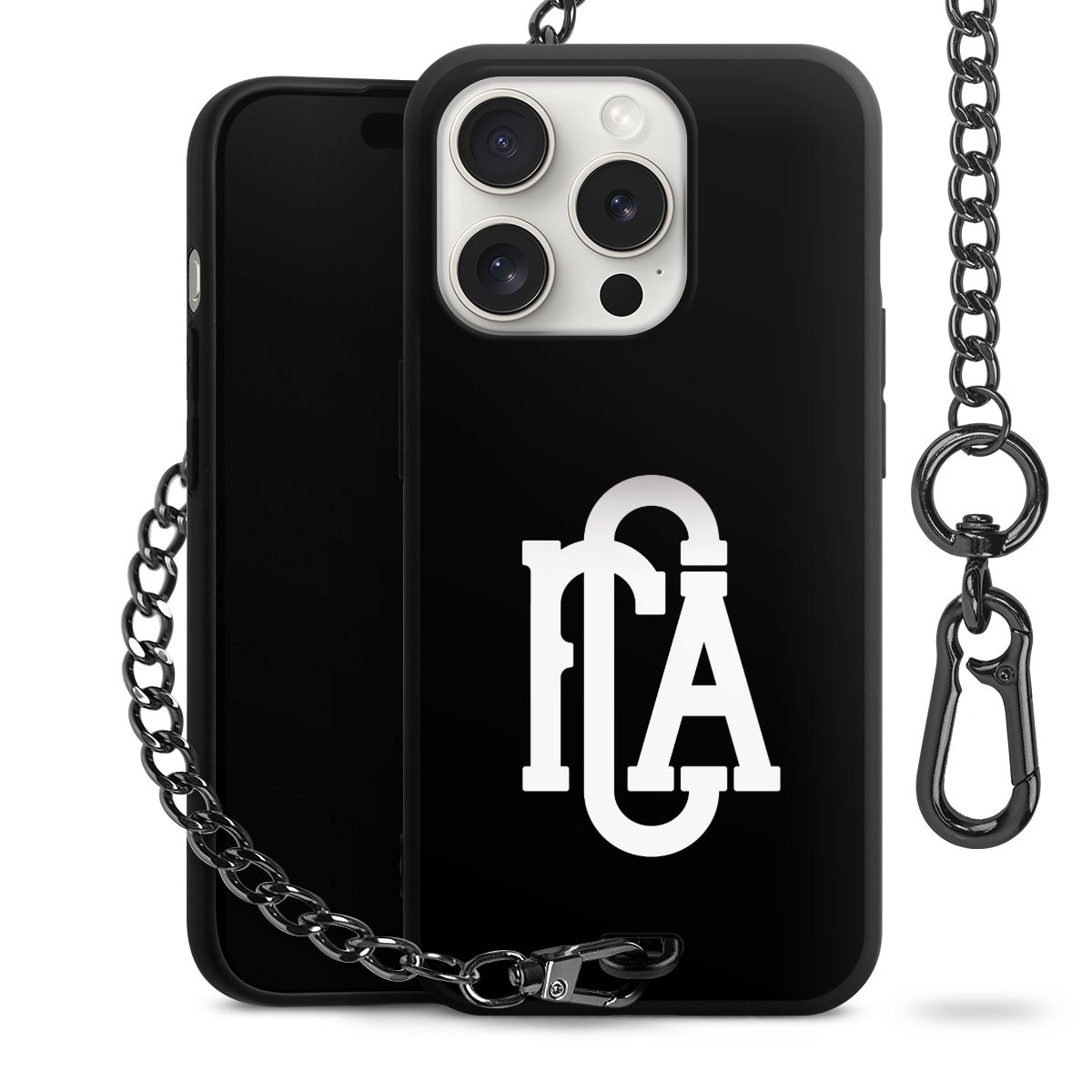 • Mattschwarze Handyhülle mit Metallkette