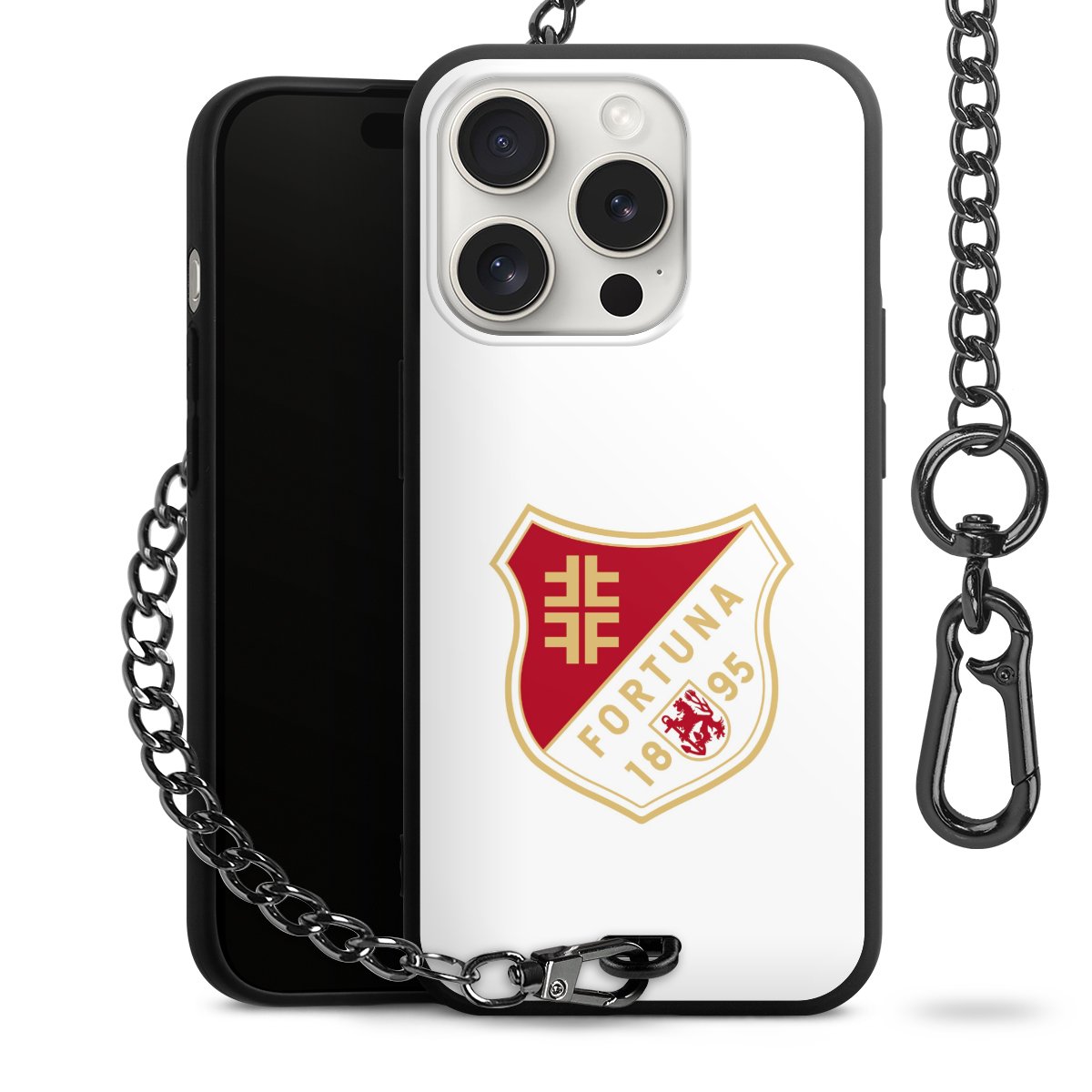 Die mattschwarze Silikon-Handyhülle besteht aus robustem TPU (thermoplastisches Polyurethan). Sie ist flexibel und schützt Dein Smartphone vor Stößen und Kratzern. Die Kette sowie der Karabinerhaken sind aus Metall in Gunmetal-Optik gefertigt. Für dieses Produkt kommen ausschließlich TÜV-geprüfte Materialien zum Einsatz.