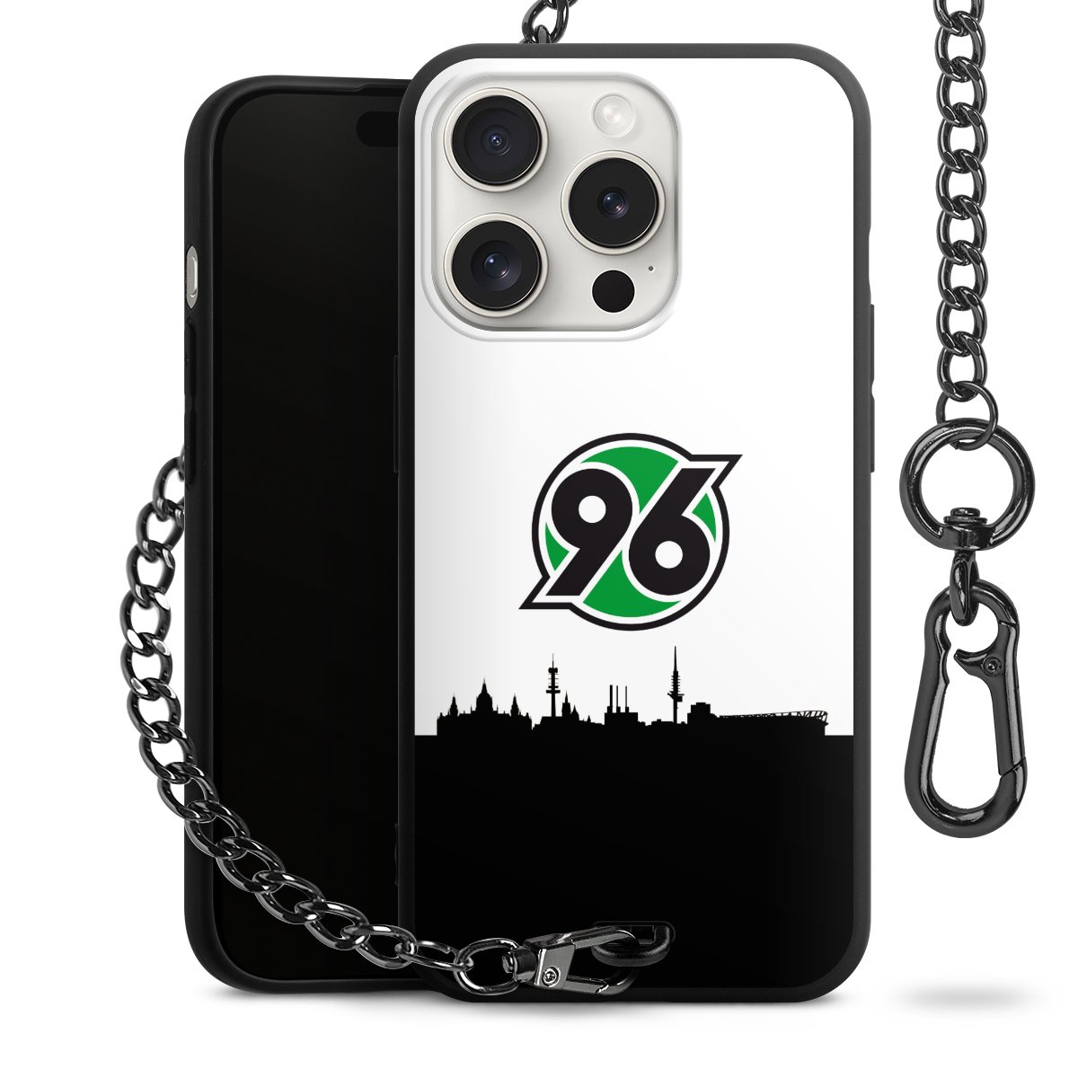 Die mattschwarze Silikon-Handyhülle besteht aus robustem TPU (thermoplastisches Polyurethan). Sie ist flexibel und schützt Dein Smartphone vor Stößen und Kratzern. Die Kette sowie der Karabinerhaken sind aus Metall in Gunmetal-Optik gefertigt. Für dieses Produkt kommen ausschließlich TÜV-geprüfte Materialien zum Einsatz.