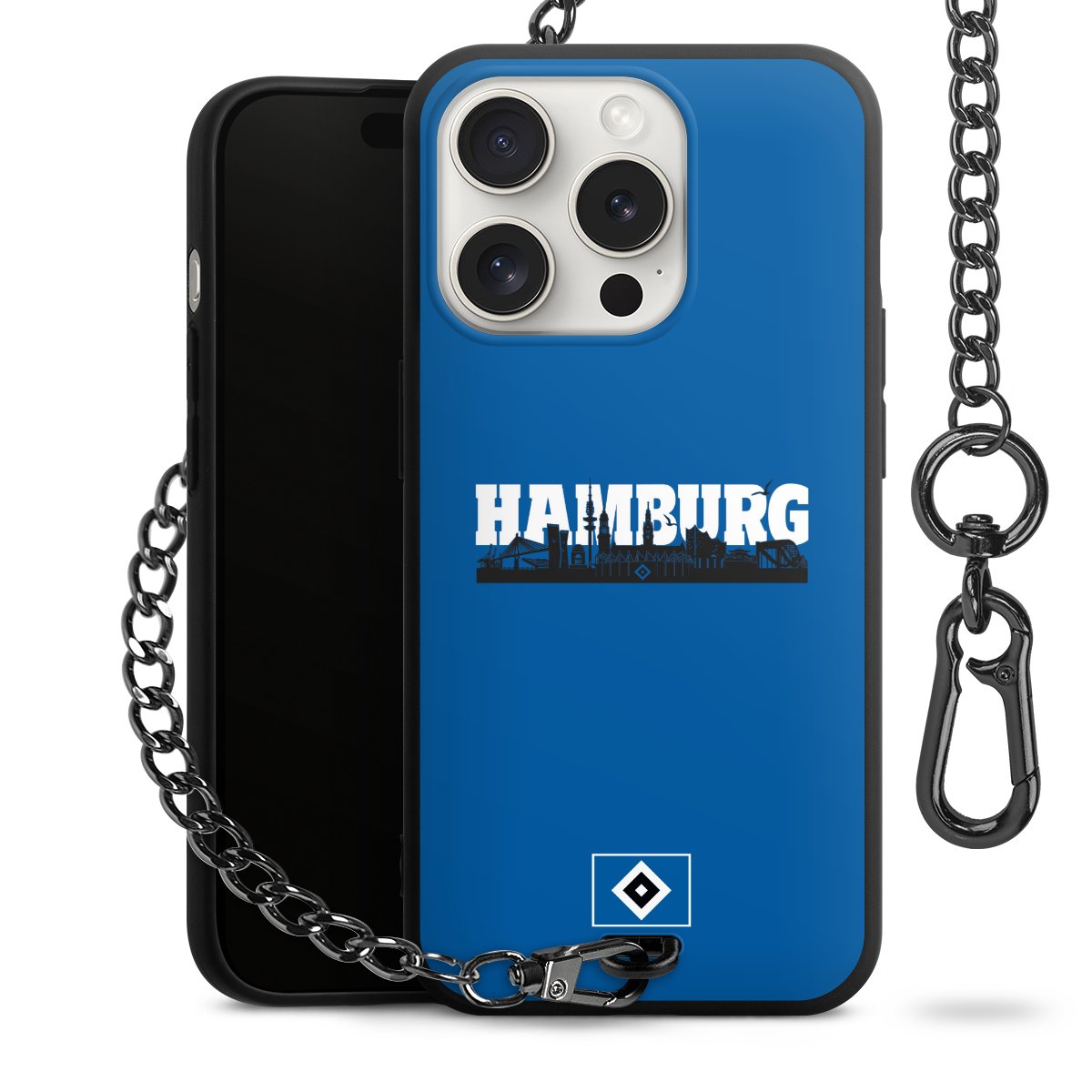 Die mattschwarze Silikon-Handyhülle besteht aus robustem TPU (thermoplastisches Polyurethan). Sie ist flexibel und schützt Dein Smartphone vor Stößen und Kratzern. Die Kette sowie der Karabinerhaken sind aus Metall in Gunmetal-Optik gefertigt. Für dieses Produkt kommen ausschließlich TÜV-geprüfte Materialien zum Einsatz.