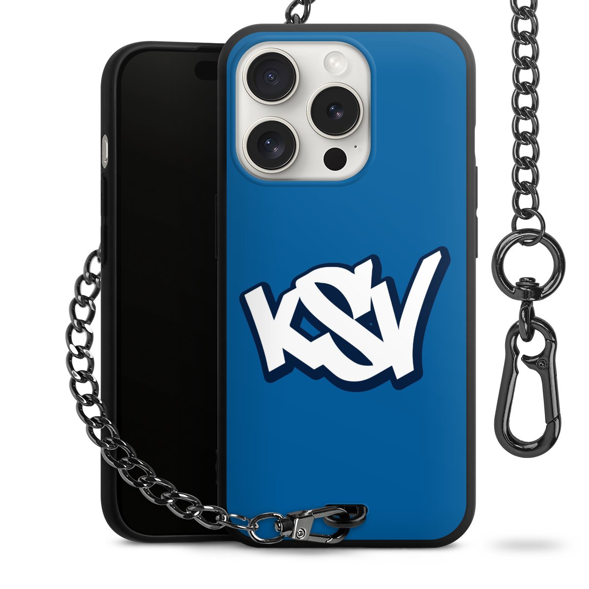 Die mattschwarze Silikon-Handyhülle besteht aus robustem TPU (thermoplastisches Polyurethan). Sie ist flexibel und schützt Dein Smartphone vor Stößen und Kratzern. Die Kette sowie der Karabinerhaken sind aus Metall in Gunmetal-Optik gefertigt. Für dieses Produkt kommen ausschließlich TÜV-geprüfte Materialien zum Einsatz.