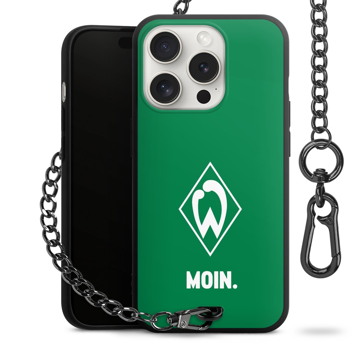 Die mattschwarze Silikon-Handyhülle besteht aus robustem TPU (thermoplastisches Polyurethan). Sie ist flexibel und schützt Dein Smartphone vor Stößen und Kratzern. Die Kette sowie der Karabinerhaken sind aus Metall in Gunmetal-Optik gefertigt. Für dieses Produkt kommen ausschließlich TÜV-geprüfte Materialien zum Einsatz.