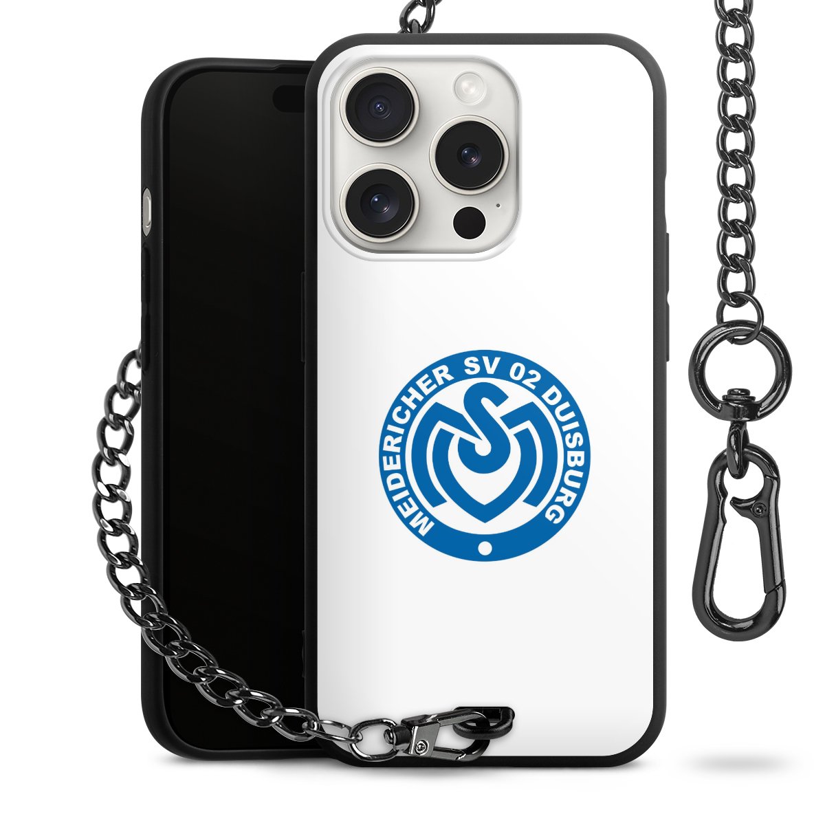 Die mattschwarze Silikon-Handyhülle besteht aus robustem TPU (thermoplastisches Polyurethan). Sie ist flexibel und schützt Dein Smartphone vor Stößen und Kratzern. Die Kette sowie der Karabinerhaken sind aus Metall in Gunmetal-Optik gefertigt. Für dieses Produkt kommen ausschließlich TÜV-geprüfte Materialien zum Einsatz.