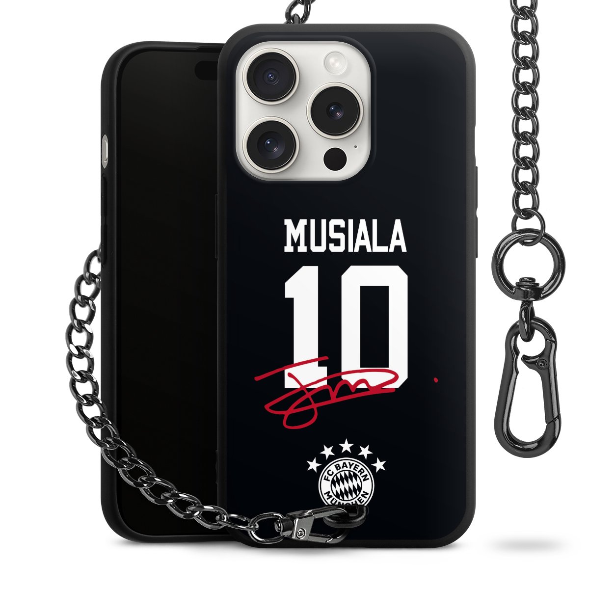 • Mattschwarze Handyhülle mit Metallkette