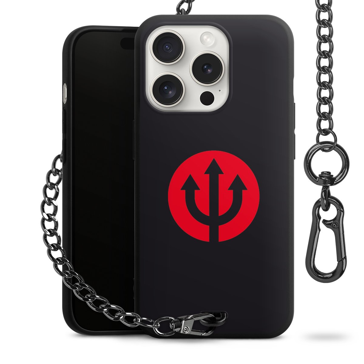 Die mattschwarze Silikon-Handyhülle besteht aus robustem TPU (thermoplastisches Polyurethan). Sie ist flexibel und schützt Dein Smartphone vor Stößen und Kratzern. Die Kette sowie der Karabinerhaken sind aus Metall in Gunmetal-Optik gefertigt. Für dieses Produkt kommen ausschließlich TÜV-geprüfte Materialien zum Einsatz.